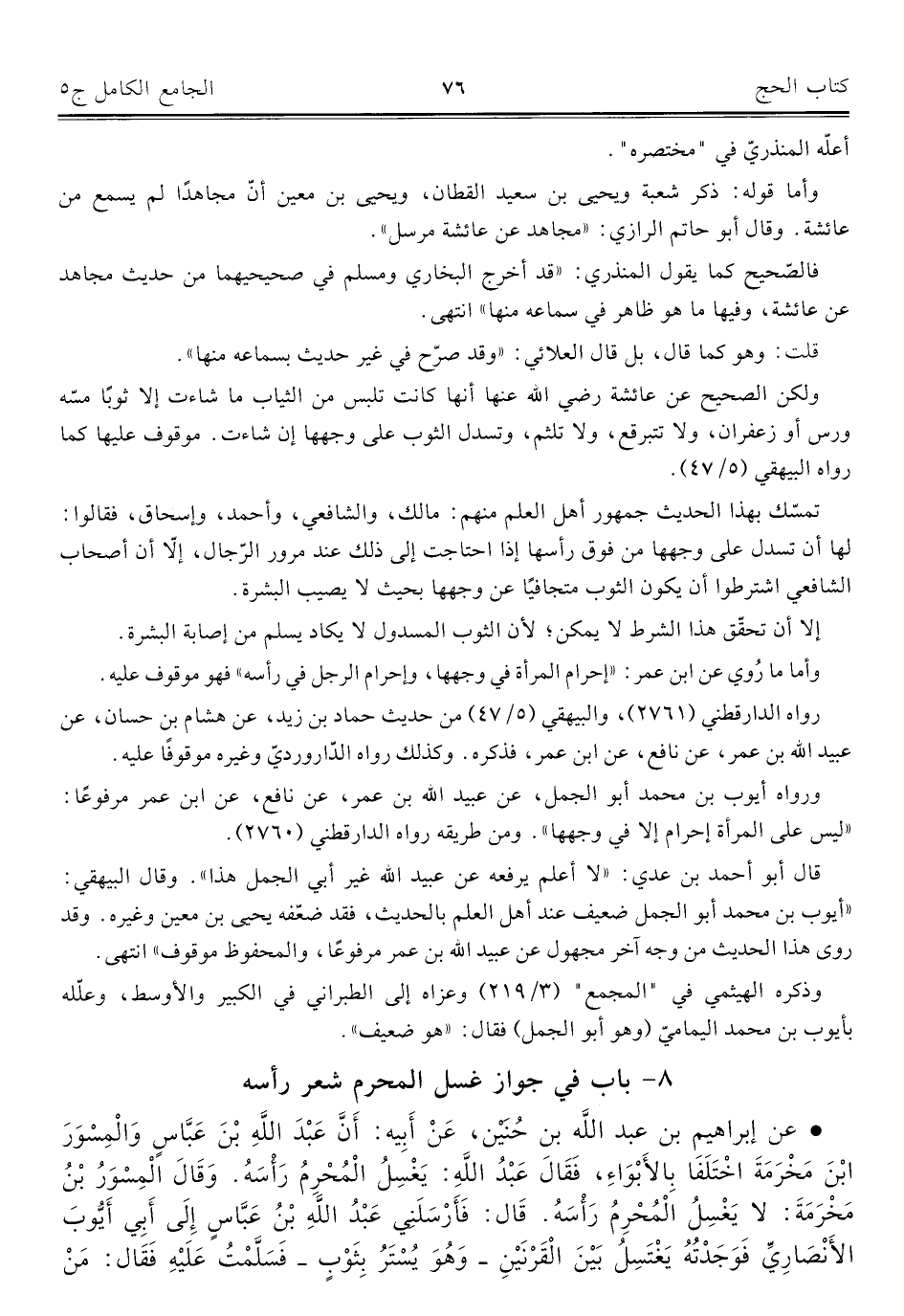 كتاب الجامع الكامل في الحديث الصحيح الشامل المرتب على أبواب الفقه (اسم الجزء: 5)