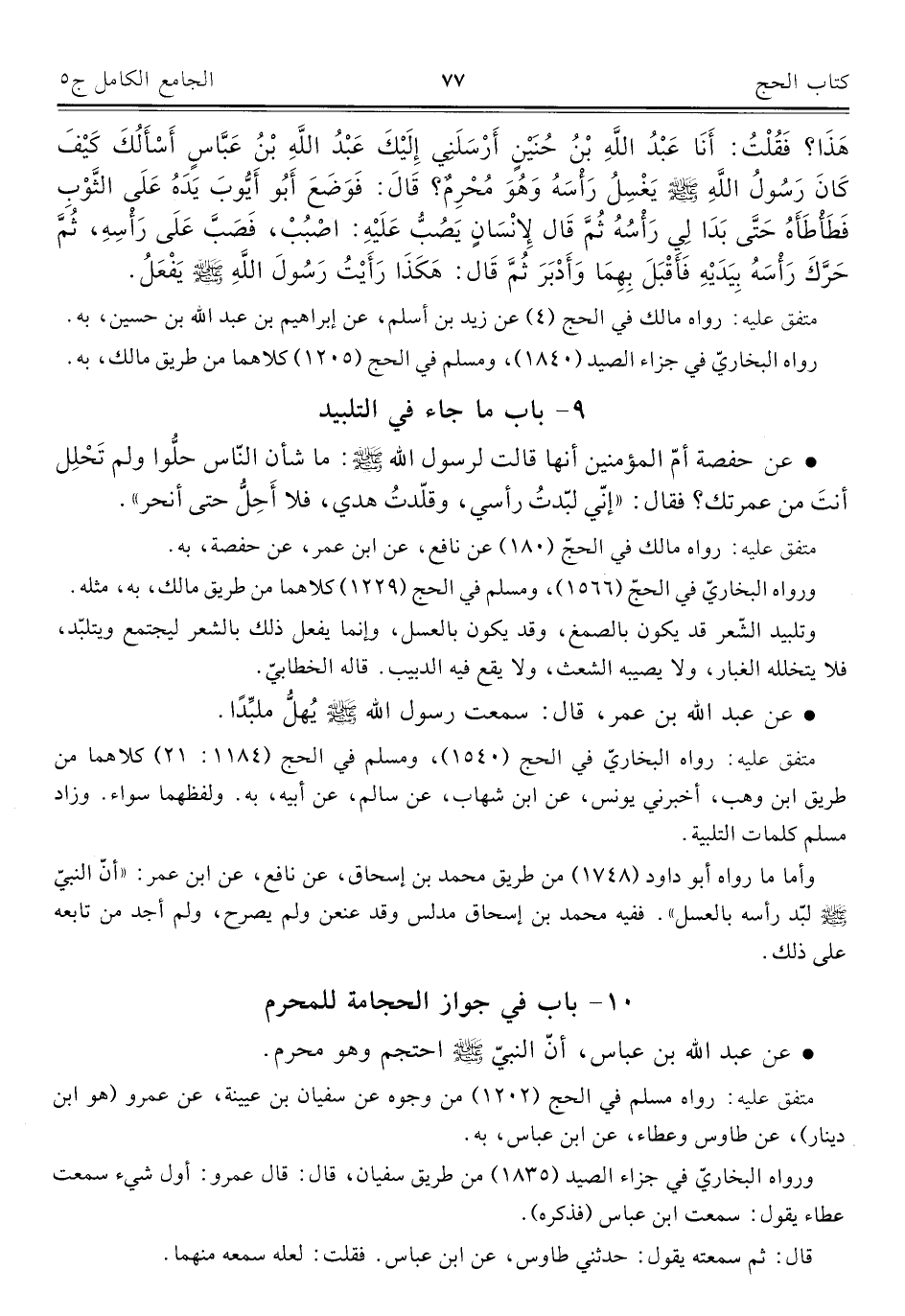 كتاب الجامع الكامل في الحديث الصحيح الشامل المرتب على أبواب الفقه (اسم الجزء: 5)