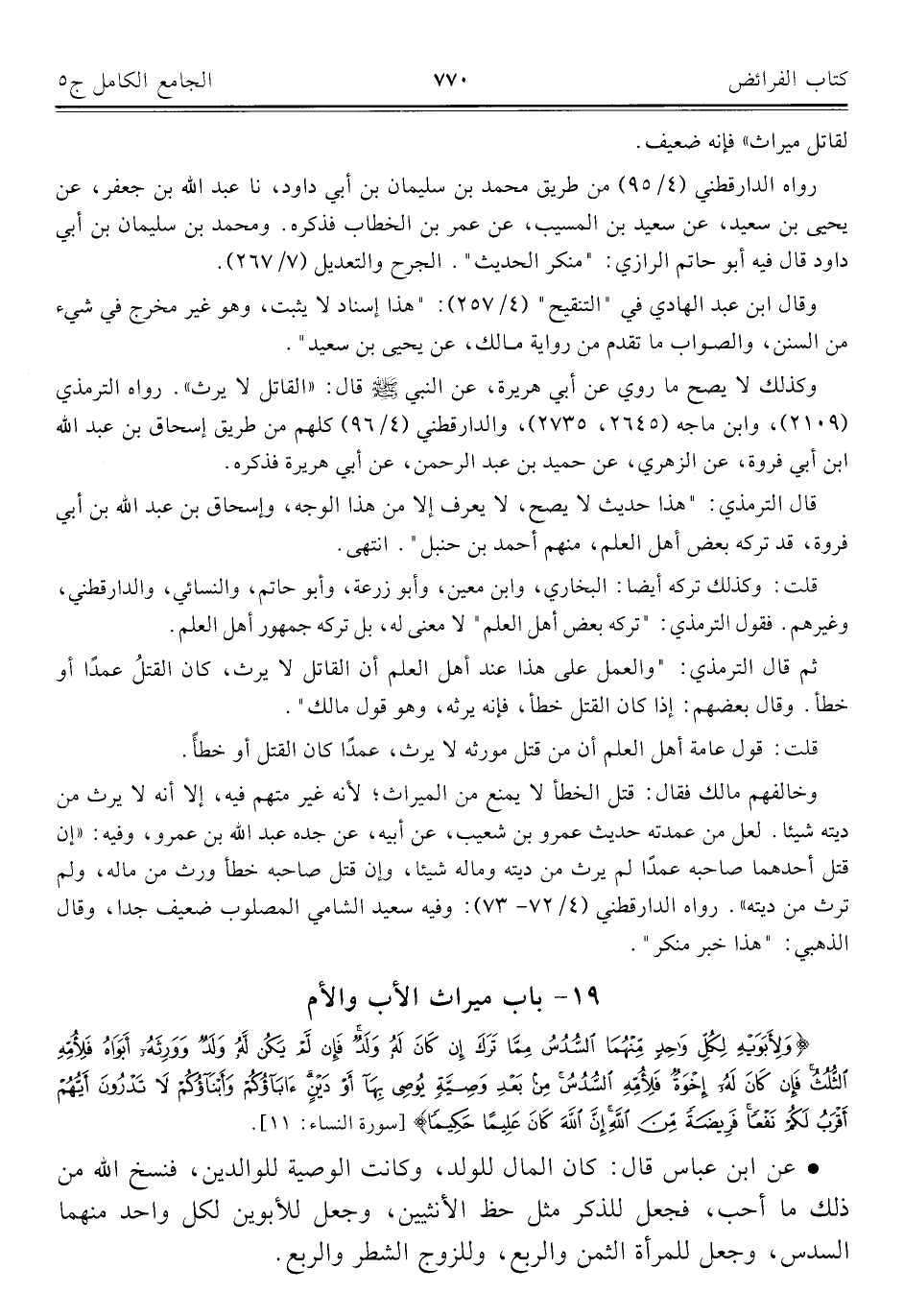 كتاب الجامع الكامل في الحديث الصحيح الشامل المرتب على أبواب الفقه (اسم الجزء: 5)