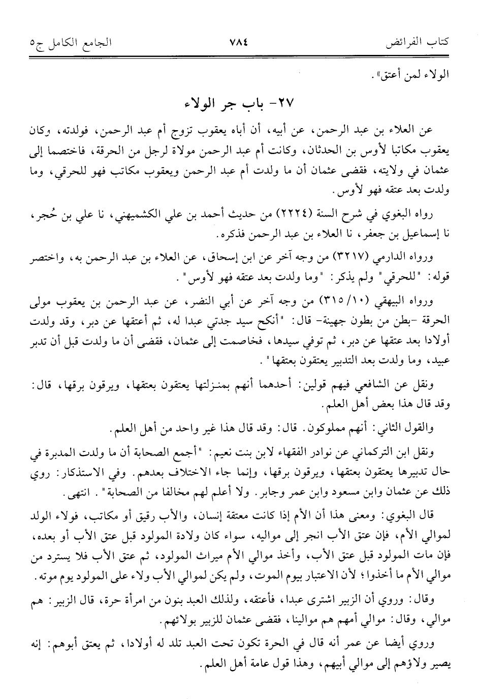 كتاب الجامع الكامل في الحديث الصحيح الشامل المرتب على أبواب الفقه (اسم الجزء: 5)