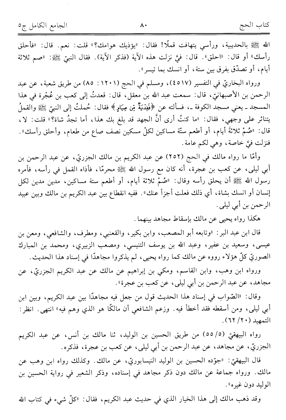 ورواه ابن وهب، وابن القاسم، ومكي بن إبراهيم عن مالك عن عبد الكريم الجزريّ، عن مجاهد، عن عبد الرحمن بن أبي ليلى، عن كعب بن عجرة".