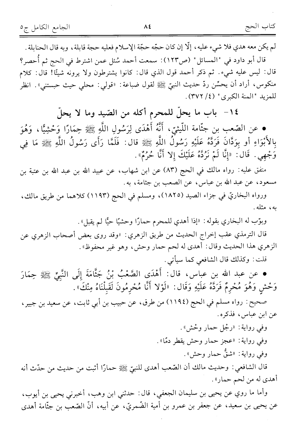 كتاب الجامع الكامل في الحديث الصحيح الشامل المرتب على أبواب الفقه (اسم الجزء: 5)