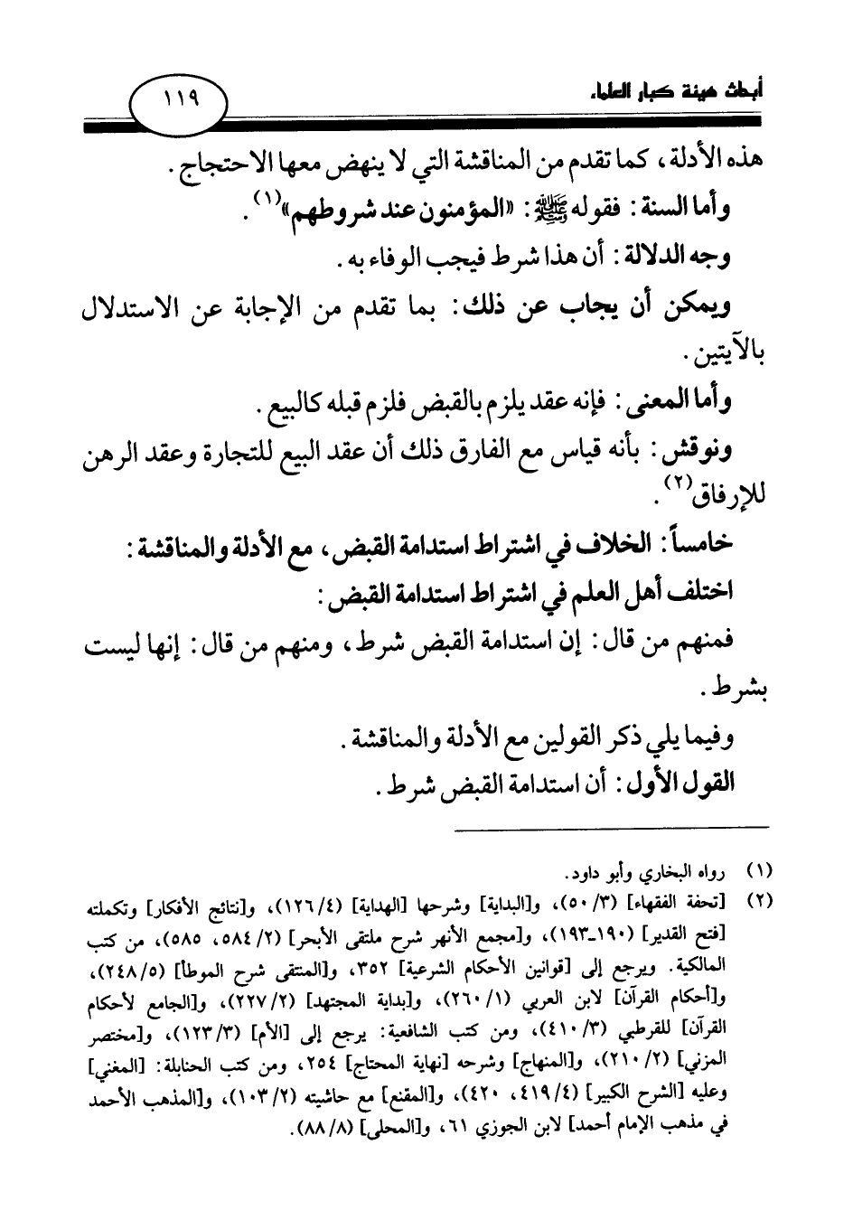 خامسا: الخلاف في اشتراط استدامة القبض، مع الأدلة والمناقشة: