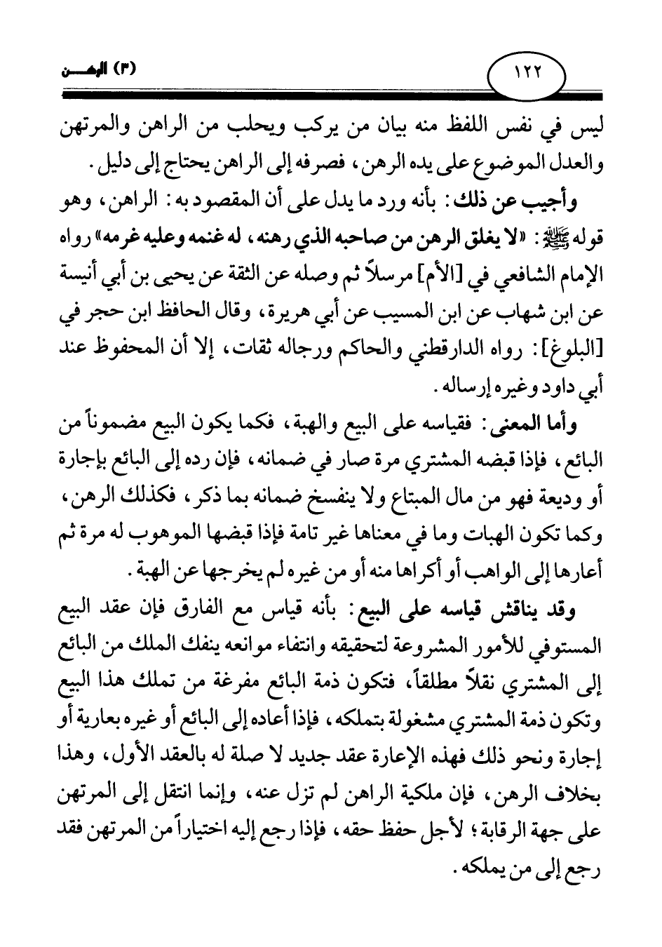 وأجيب عن ذلك: بأنه ورد ما يدل على أن المقصود به: الراهن، وهو قوله صلى الله عليه وسلم: «لا يغلق الرهن من صاحبه الذي رهنه، له غنمه وعليه غرمه (¬1) » رواه الإمام الشافعي في [الأم] مرسلا ثم وصله عن الثقة عن يحيى بن أبي أنيسة عن ابن شهاب عن ابن المسيب عن أبي هريرة، وقال الحافظ ابن حجر في [البلوغ] : رواه الدارقطني والحاكم ورجاله ثقات، إلا أن المحفوظ عند أبي داود وغيره إرساله.
