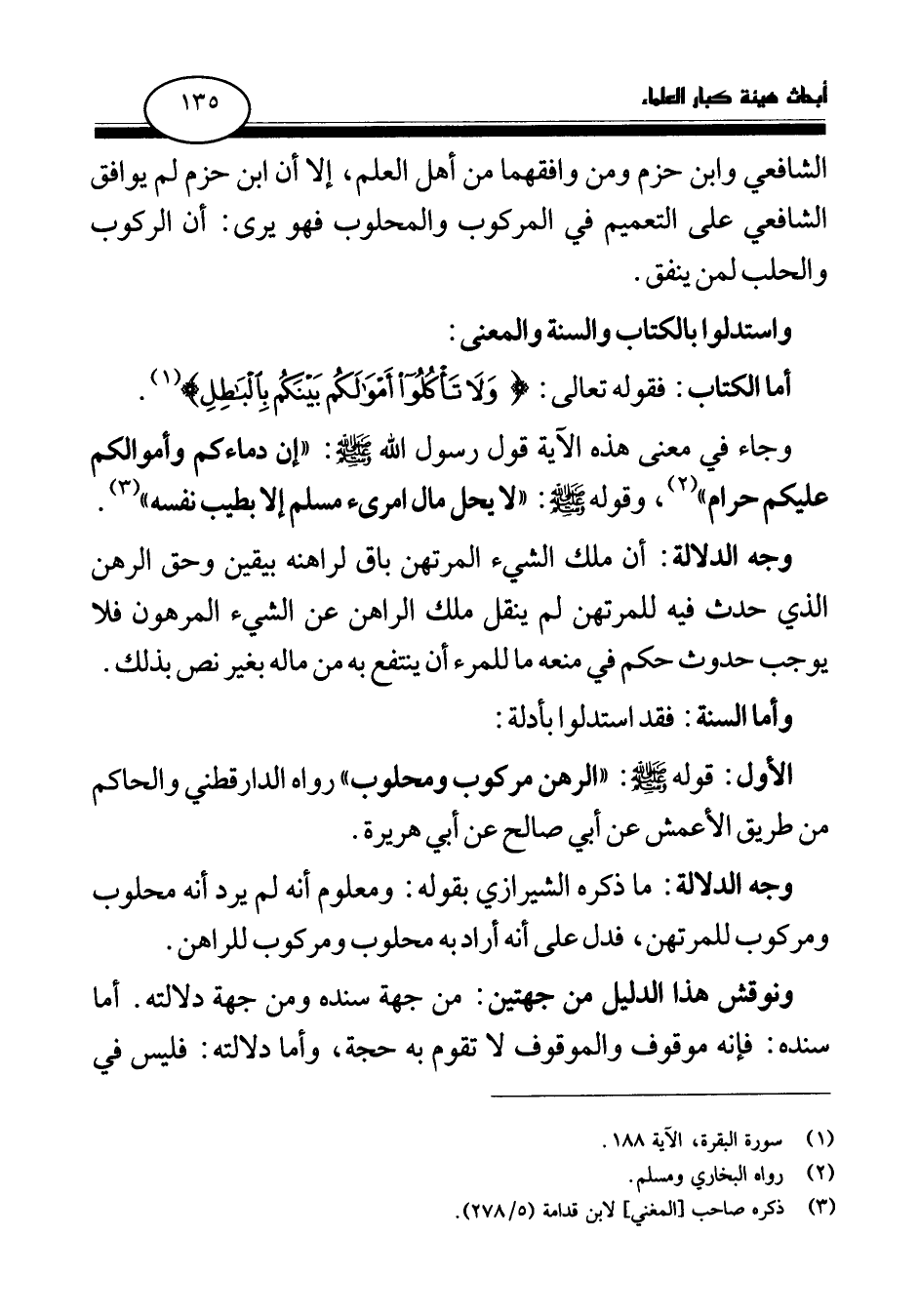 الأول: قوله صلى الله عليه وسلم: «الرهن مركوب ومحلوب» رواه الدارقطني والحاكم من طريق الأعمش عن أبي صالح عن أبي هريرة.