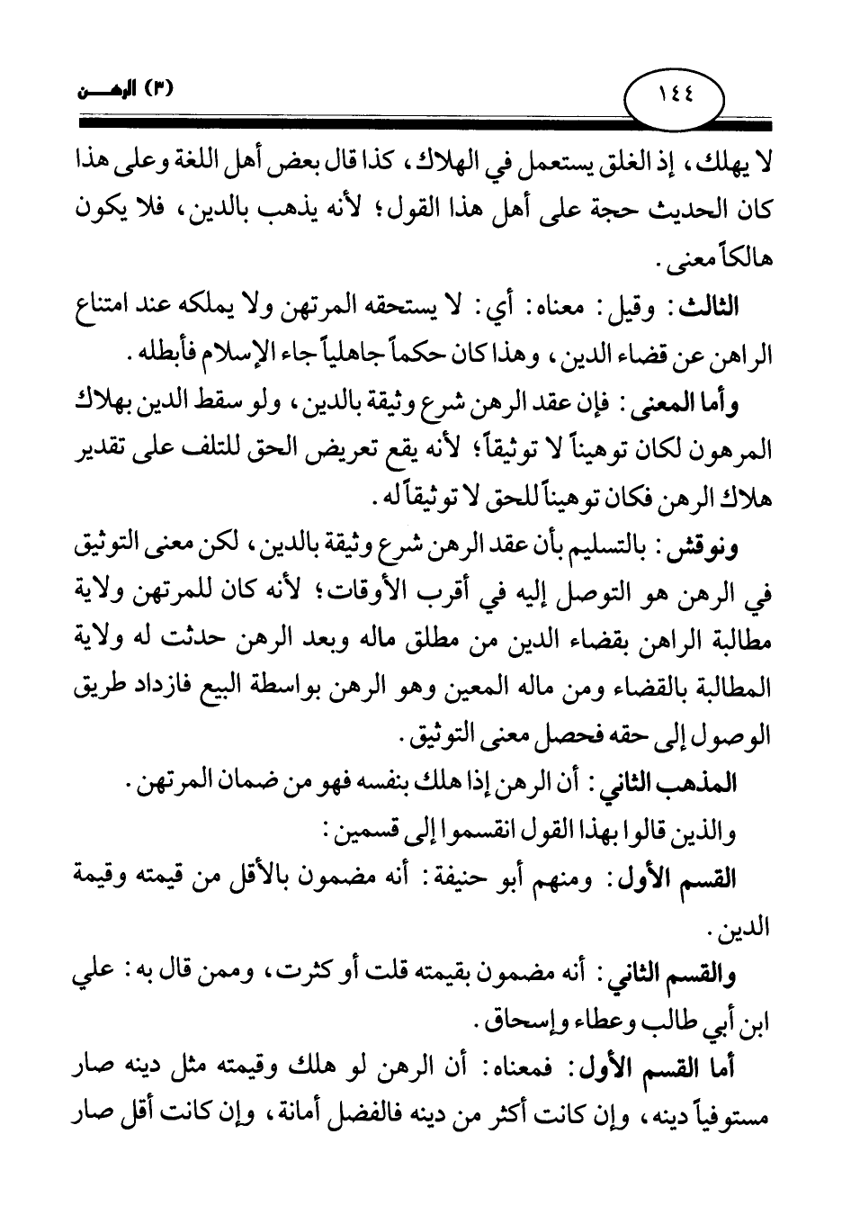 القسم الأول: ومنهم أبو حنيفة: أنه مضمون بالأقل من قيمته وقيمة الدين.