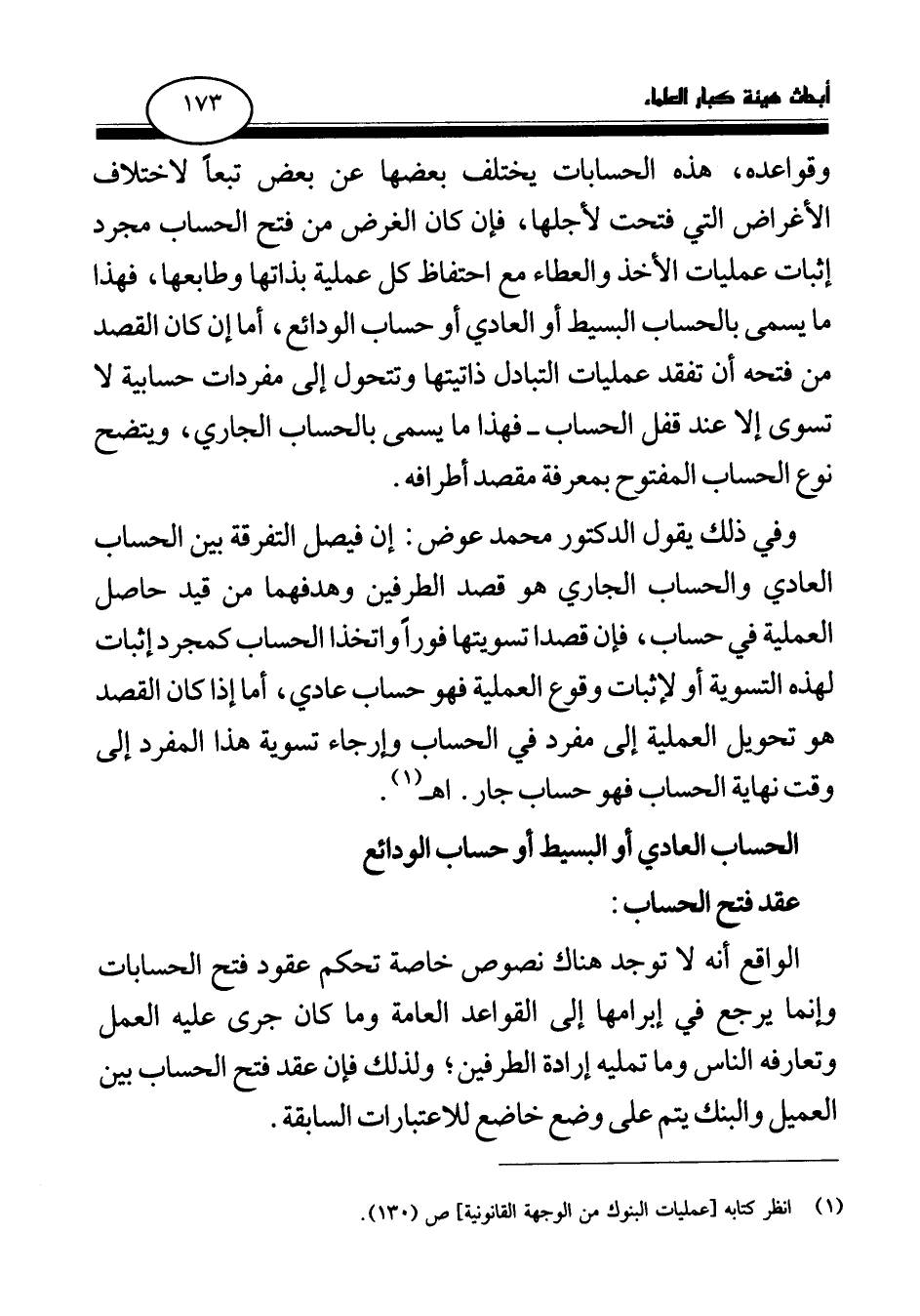 (¬1) انظر كتابه [عمليات البنوك من الوجهة القانونية] ص (130) .