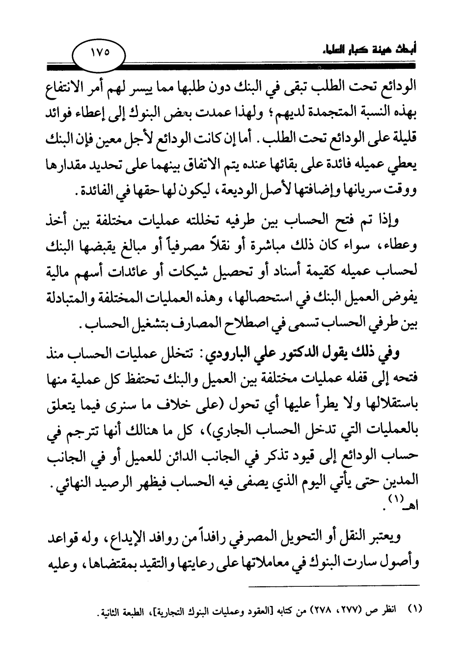 (¬1) انظر ص (277، 278) من كتابه [العقود وعمليات البنوك التجارية] ، الطبعة الثانية