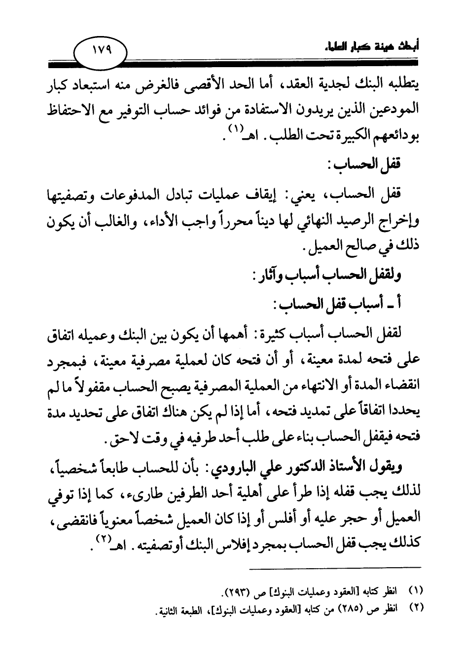 (¬2) انظر ص (285) من كتابه [العقود وعمليات البنوك] ، الطبعة الثانية