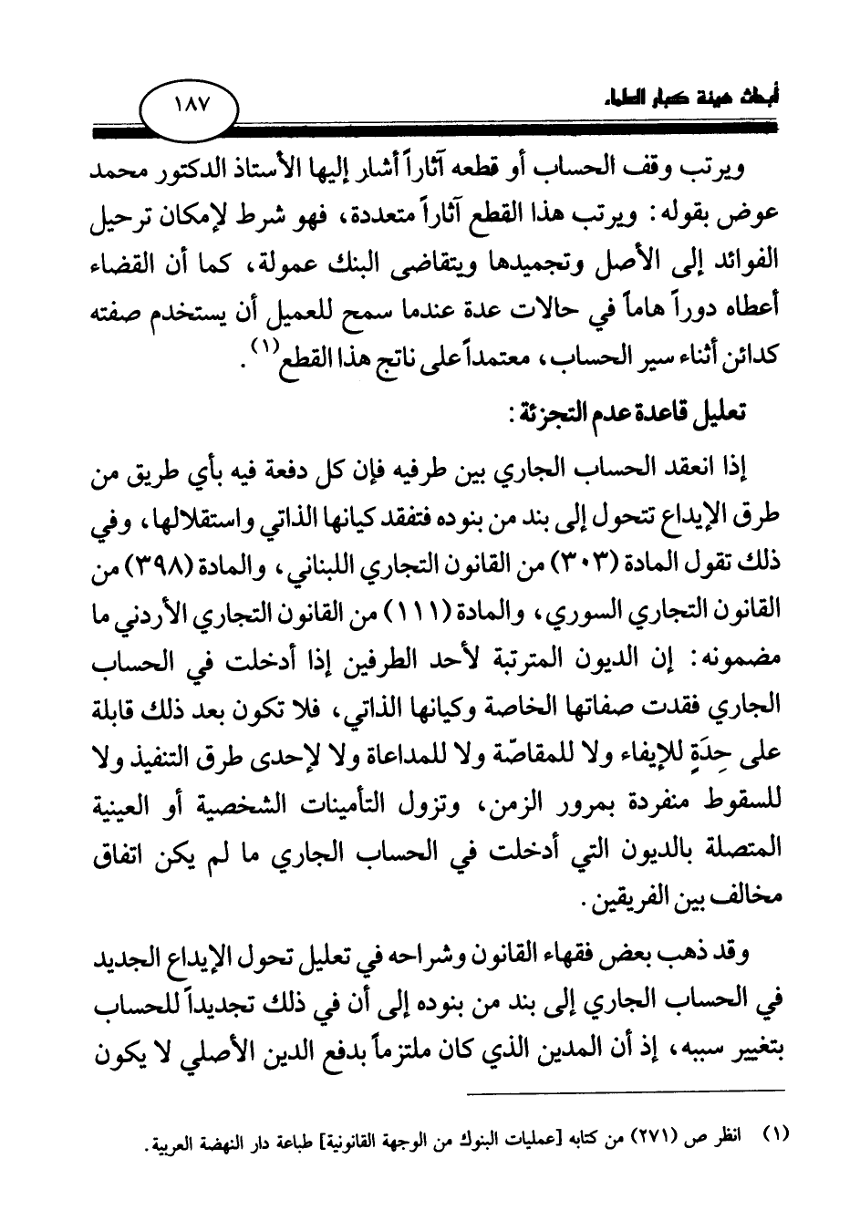 (¬1) انظر ص (271) من كتابه [عمليات البنوك من الوجهة القانونية] طباعة دار النهضة العربية.