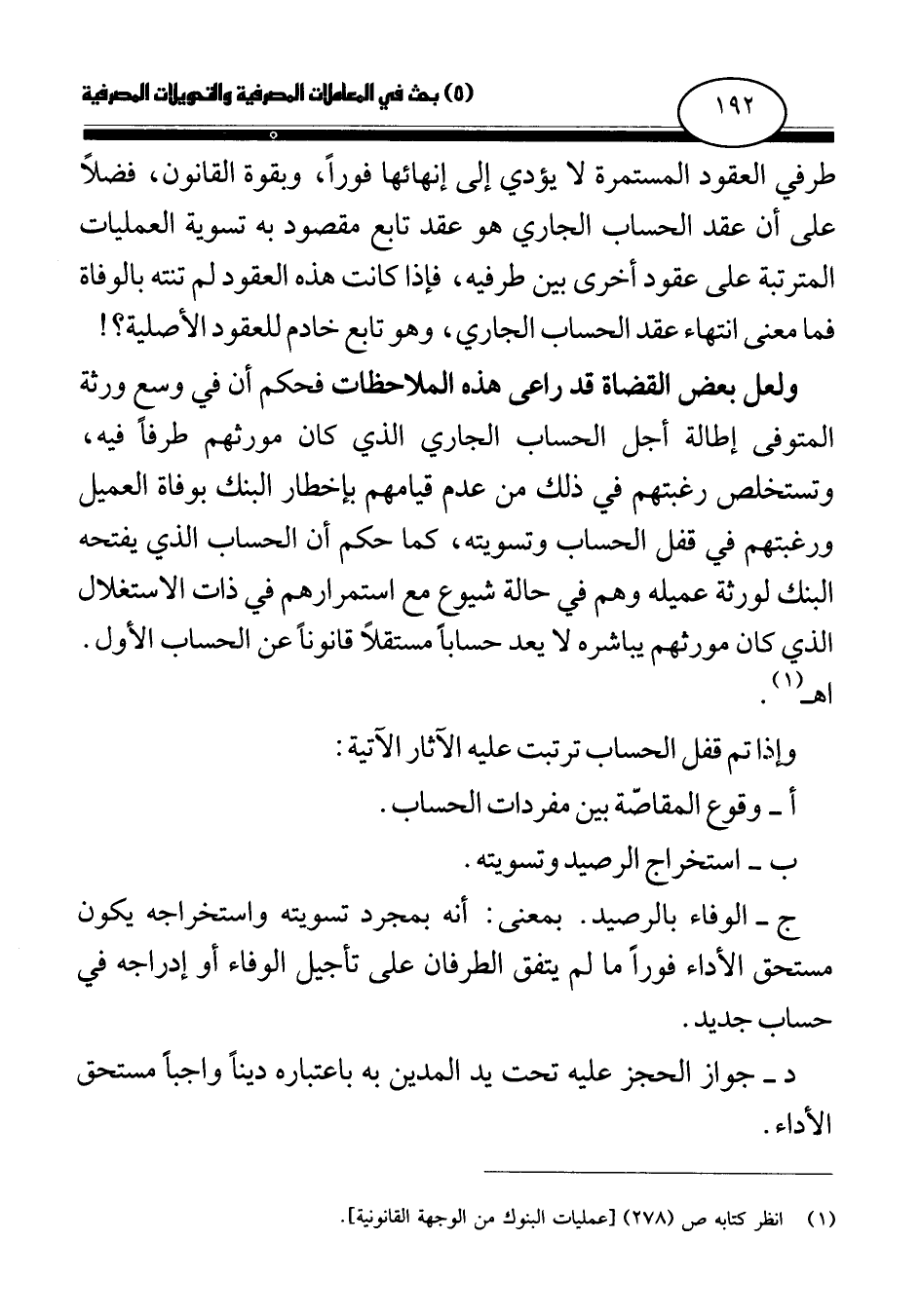 (¬1) انظر كتابه ص (278) [عمليات البنوك من الوجهة القانونية] .