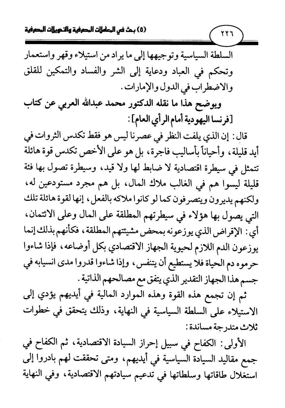 ويوضح هذا ما نقله الدكتور محمد عبد الله العربي عن كتاب [فرنسا اليهودية أمام الرأي العام] :