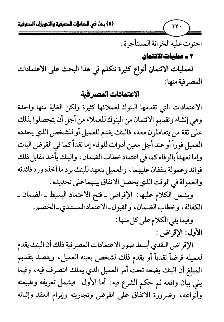 ويشمل الكلام عليها: الإقراض - فتح الاعتماد البسيط - الضمان - الكفالة، وخطاب الضمان، والقبول - الاعتماد المستندي - الخصم.