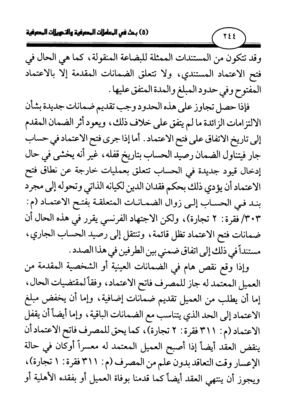 فإذا حصل تجاوز على هذه الحدود وجب تقديم ضمانات جديدة بشأن الالتزامات الزائدة ما لم يتفق على خلاف ذلك، ويعود أثر الضمان المقدم إلى تاريخ الاتفاق على فتح الاعتماد. أما إذا جرى فتح الاعتماد في حساب جار فيتناول الضمان رصيد الحساب بتاريخ قفله، غير أنه يخشى في حال إدخال قيود جديدة في الحساب تتعلق بعمليات خارجة عن نطاق فتح الاعتماد أن يؤدي ذلك بحكم فقدان الدين لكيانه الذاتي وتحوله إلى مجرد بند في الحساب إلى زوال الضمانات المتعلقة بفتح الاعتماد (م: 303 \ فقرة: 2 تجارة) ، ولكن الاجتهاد الفرنسي يقرر في هذه الحال أن ضمانات فتح الاعتماد تظل قائمة، وتنتقل إلى رصيد الحساب الجاري، مستندا في ذلك إلى اتفاق ضمني بين الطرفين في هذا الصدد.