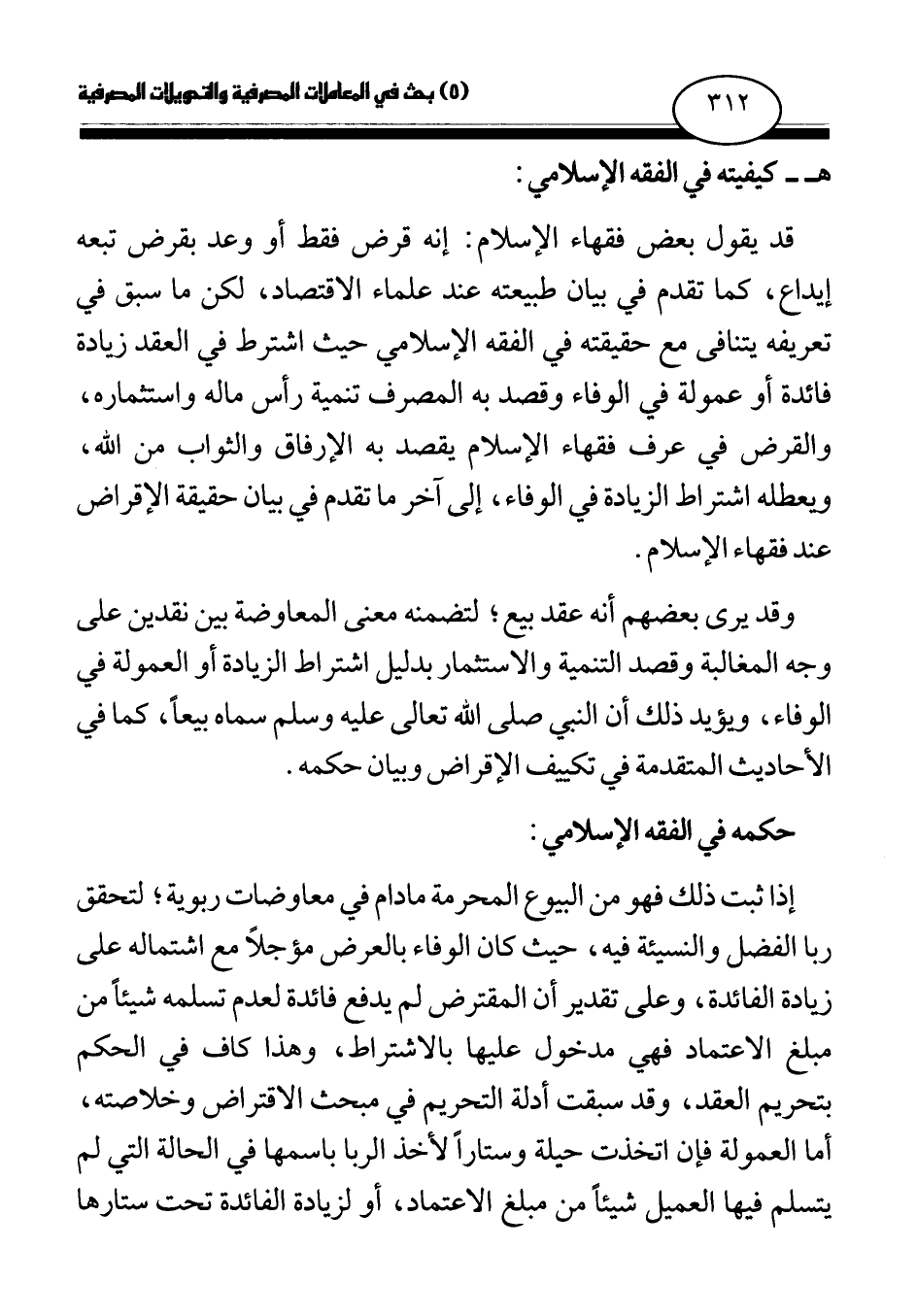 قد يقول بعض فقهاء الإسلام: إنه قرض فقط أو وعد بقرض تبعه إيداع، كما تقدم في بيان طبيعته عند علماء الاقتصاد، لكن ما سبق في تعريفه يتنافى مع حقيقته في الفقه الإسلامي حيثما اشترط في العقد زيادة فائدة أو عمولة في الوفاء وقصد به المصرف تنمية رأس ماله واستثماره، والقرض في عرف فقهاء الإسلام يقصد به الإرفاق والثواب من الله، ويعطله اشتراط الزيادة في الوفاء، إلى آخر ما تقدم في بيان حقيقة الإقراض عند فقهاء الإسلام.