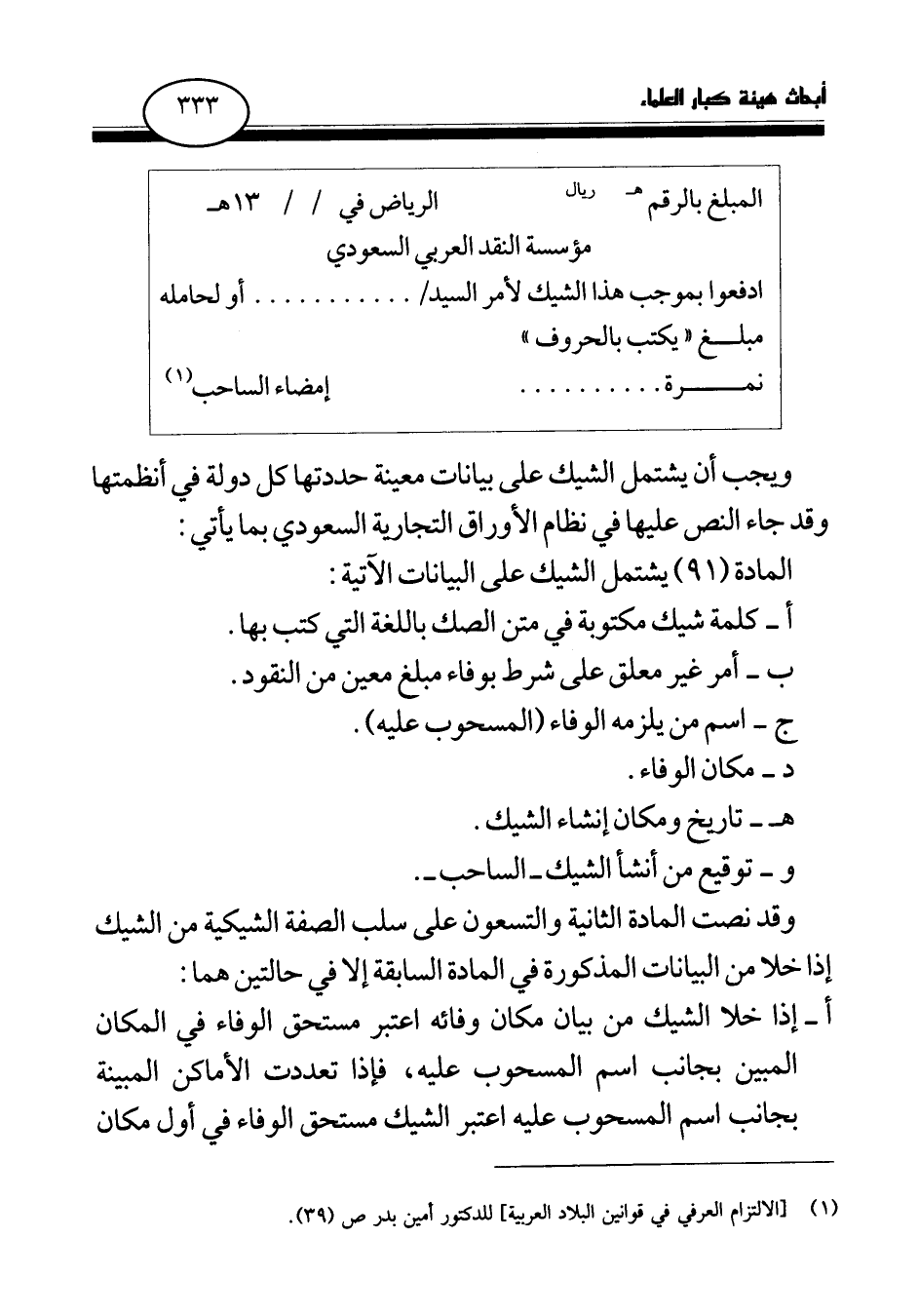 (¬1) [الالتزام العرفي في قوانين البلاد العربية] ، للدكتور أمين بدر ص (39) .