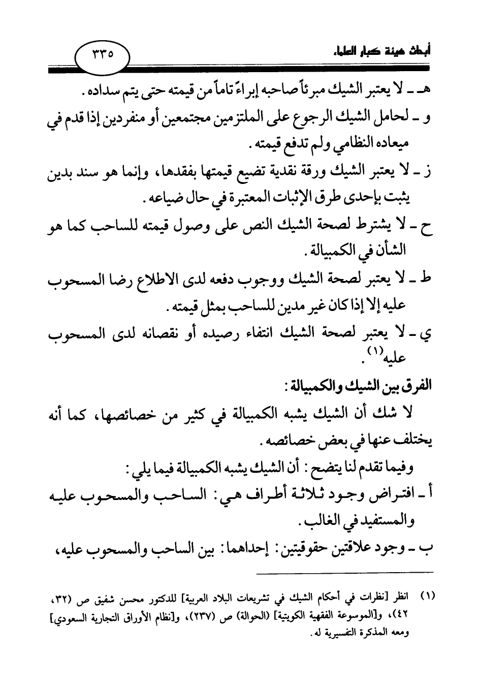 ح - لا يشترط لصحة الشيك النص على وصول قيمته للساحب كما هو الشأن في الكمبيالة.