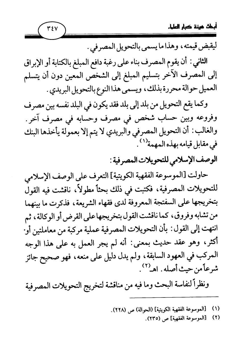 ونظرا لنفاسة البحث وما فيه من مناقشة لتخريج التحويلات المصرفية