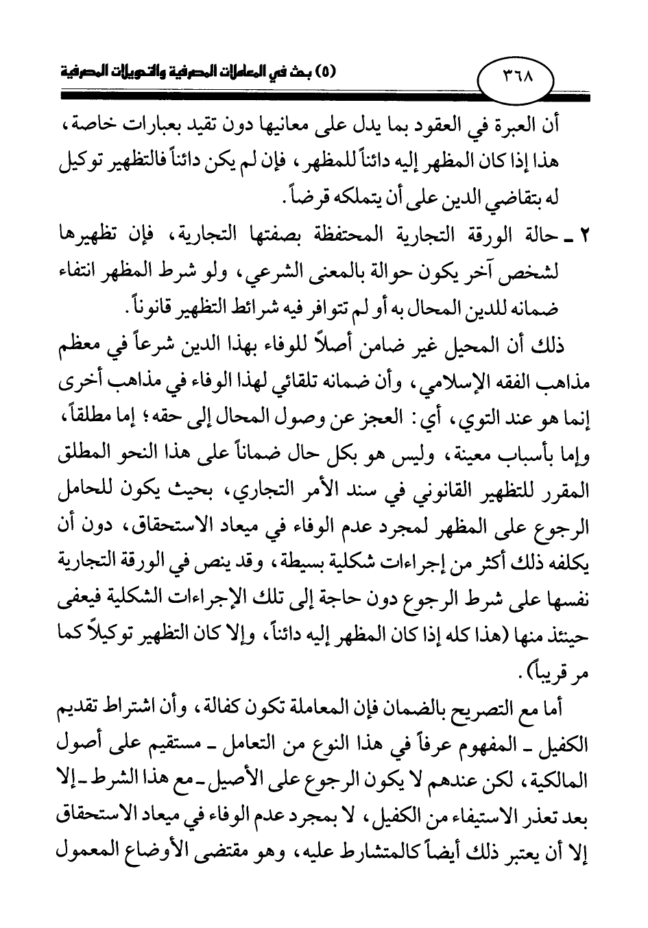 ذلك أن المحيل غير ضامن أصلا للوفاء بهذا الدين شرعا في معظم مذاهب الفقه الإسلامي، وأن ضمانه تلقائي لهذا الوفاء في مذاهب أخرى إنما هو عند التوي، أي: العجز عن وصول المحال إلى حقه، إما مطلقا، وإما بأسباب معينة، وليس هو بكل حال ضمانا على هذا النحو المطلق المقرر للتظهير القانوني في سند الأمر التجاري، بحيث يكون للحامل الرجوع على المظهر لمجرد عدم الوفاء في ميعاد الاستحقاق، دون أن يكلفه ذلك أكثر من إجراءات شكلية بسيطة، وقد ينص في الورقة التجارية نفسها على شرط الرجوع دون حاجة إلى تلك الإجراءات الشكلية فيعفى حينئذ منها (هذا كله إذا كان المظهر إليه دائنا، وإلا كان التظهير توكيلا كما مر قريبا.