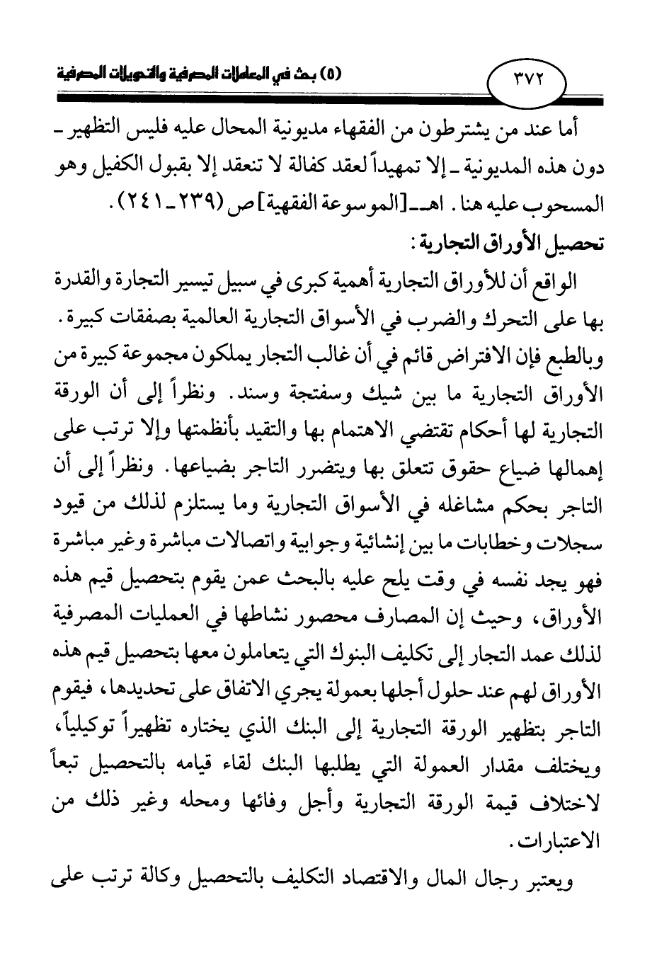 الواقع أن للأوراق التجارية أهمية كبرى في سبيل تيسير التجارة والقدرة بها على التحرك والضرب في الأسواق التجارية العالمية بصفقات كبيرة. وبالطبع فإن الافتراض قائم في أن غالب التجار يملكون مجموعة كبيرة من الأوراق التجارية ما بين شيك وسفتجة وسند. ونظرا إلى أن الورقة التجارية لها أحكام تقتضي الاهتمام بها والتقيد بأنظمتها وإلا ترتب على إهمالها ضياع حقوق تتعلق بها ويتضرر التاجر بضياعها. ونظرا إلى أن التاجر بحكم مشاغله في الأسواق التجارية وما يستلزم لذلك من قيود سجلات وخطابات ما بين إنشائية وجوابية واتصالات مباشرة وغير مباشرة فهو يجد نفسه في وقت يلح عليه بالبحث عمن يقوم بتحصيل قيم هذه الأوراق، وحيث إن المصارف محصور نشاطها في العمليات المصرفية لذلك عمد التجار إلى تكليف البنوك التي يتعاملون معها بتحصيل قيم هذه الأوراق لهم عند حلول أجلها بعمولة يجري الاتفاق على تحديدها، فيقوم التاجر بتظهير الورقة التجارية إلى البنك الذي يختاره تظهير توكيليا، ويختلف مقدار العمولة التي طلبها البنك لقاء قيامه بالتحصيل تبعا لاختلاف قيمة الورقة التجارية وأجل وفائها ومحله وغير ذلك من الاعتبارات.