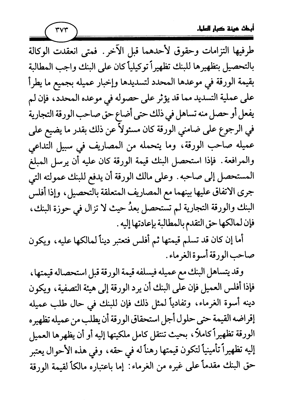 وقد يتساهل البنك مع عميله فيسلفه قيمة الورقة قبل استحصاله قيمتها، فإذا أفلس العميل فإن على البنك أن يرد الورقة إلى هيئة التصفية، ويكون دينه أسوة الغرماء، وتفاديا لمثل ذلك فإن للبنك في حال طلب عميله إقراضه القيمة حتى حلول أجل استحقاق الورقة أن يطلب من عميله تظهيره الورقة تظهيرا كاملا، بحيث تنتقل كامل ملكيتها إليه أو أن يظهرها العميل إليه تظهيرا تأمينيا لتكون قيمتها رهنا له في حقه، وفي هذه الأحوال يعتبر حق البنك مقدما على غيره من الغرماء: إما باعتباره مالكا لقيمة الورقة
