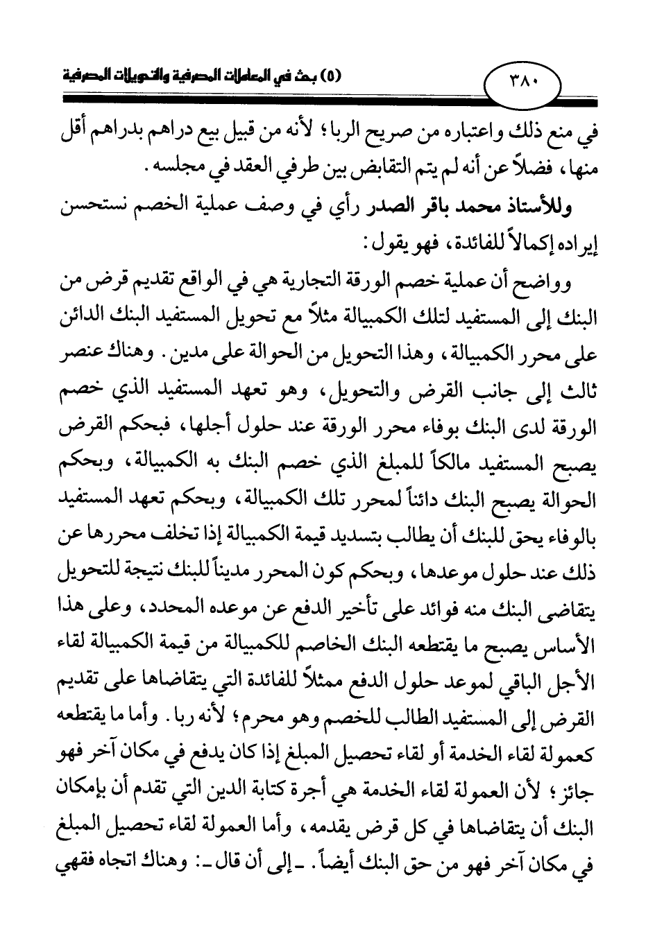 وللأستاذ محمد باقر الصدر رأي في وصف عملية الخصم نستحسن إيراده إكمالا للفائدة، فهو يقول: