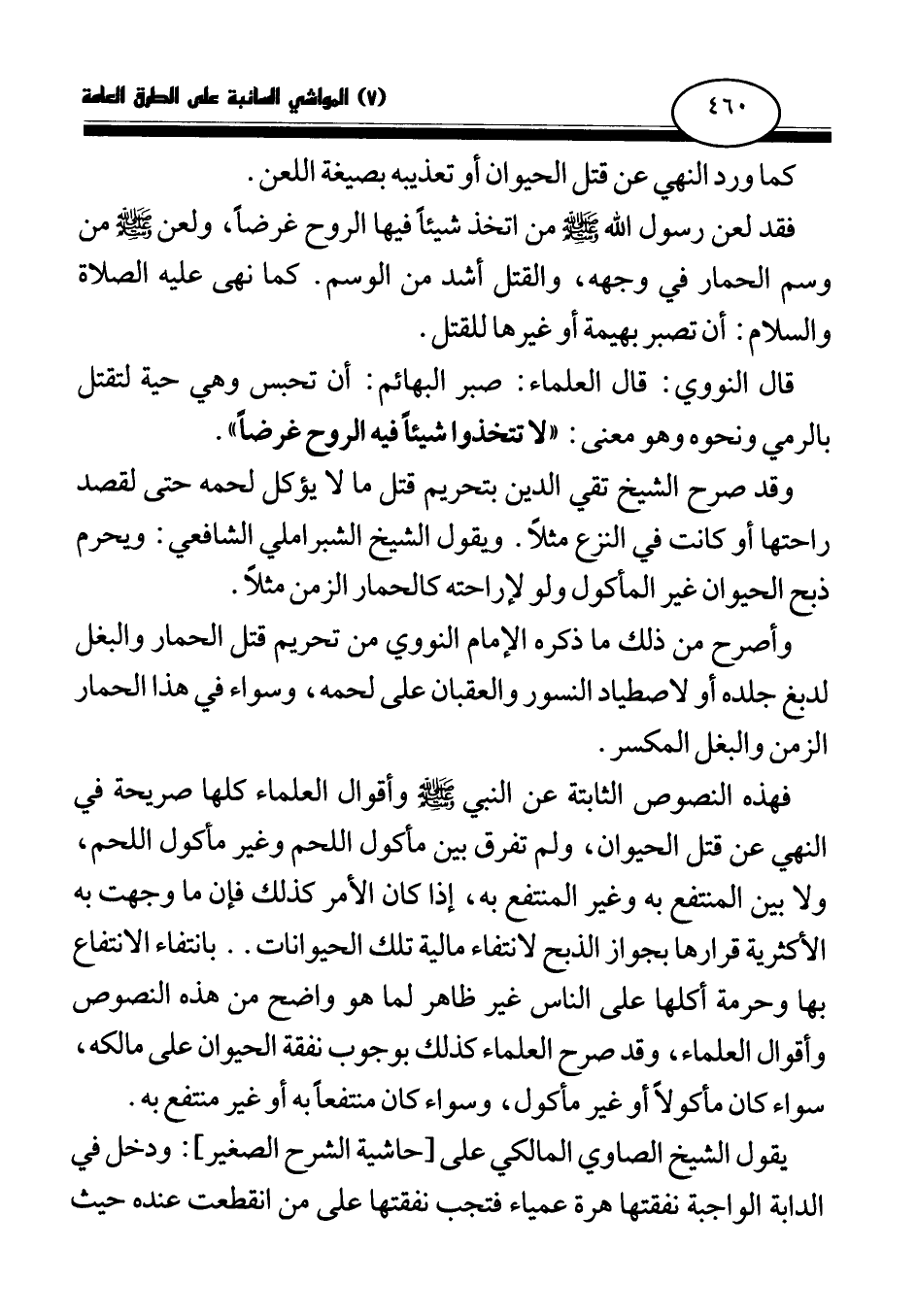 فهذه النصوص الثابتة عن النبي صلى الله عليه وسلم وأقوال العلماء كلها صريحة في النهي عن قتل الحيوان، ولم تفرق بين مأكول اللحم وغير مأكول اللحم، ولا بين المنتفع به وغير المنتفع به، إذا كان الأمر كذلك فإن ما وجهت به الأكثرية قرارها بجواز الذبح لانتفاء مالية تلك الحيوانات. . بانتفاء الانتفاع بها وحرمة أكلها على الناس غير ظاهر لما هو واضح من هذه النصوص وأقوال العلماء، وقد صرح العلماء كذلك بوجوب نفقة الحيوان على مالكه، سواء كان مأكولا أو غير مأكول، وسواء كان منتفعا به أو غير منتفع به.