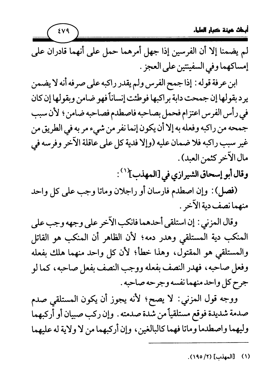 ووجه قول المزني: لا يصح؛ لأنه يجوز أن يكون المستلقي صدم صدمة شديدة فوقع مستلقيا من شدة صدمته. وإن ركب صبيان أو أركبهما وليهما واصطدما وماتا فهما كالبالغين، وإن أركبهما من لا ولاية له عليهما