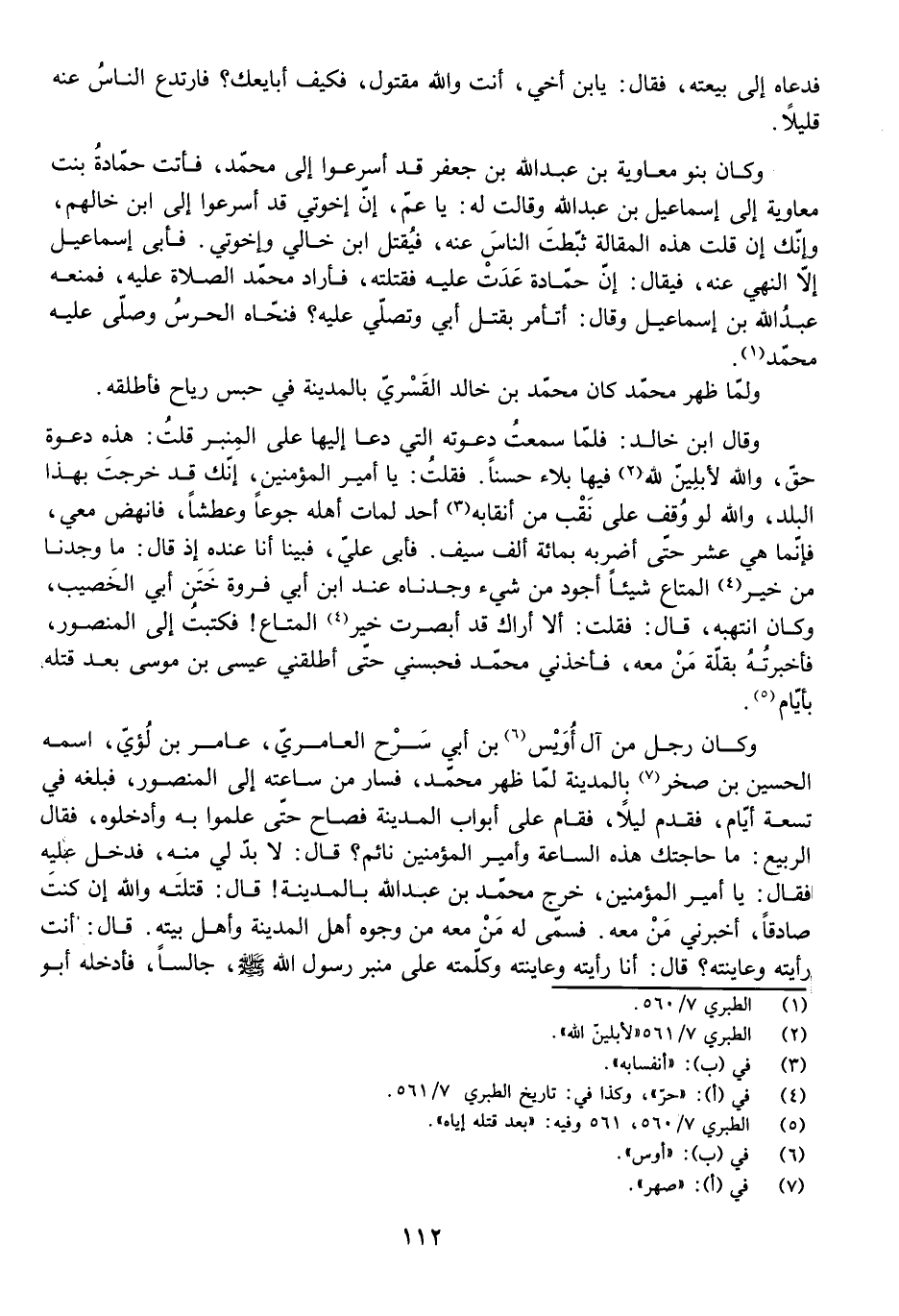 فَأَبَى عَلَيَّ، فَبَيْنَا أَنَا عِنْدَهُ إِذْ قَالَ: مَا وَجَدْنَا مِنْ خَيْرِ الْمَتَاعِ شَيْئًا أَجْوَدَ مِنْ شَيْءٍ وَجَدْنَاهُ عِنْدَ ابْنِ أَبِي فَرْوَةَ خَتَنِ أَبِي الْخَصِيبِ، وَكَانَ انْتَبَهَ، قَالَ: فَقُلْتُ: أَلَا أَرَاكَ قَدْ أَبْصَرْتَ خَيْرَ الْمَتَاعِ! فَكَتَبْتُ إِلَى الْمَنْصُورِ فَأَخْبَرْتُهُ بِقِلَّةِ مَنْ مَعَهُ، فَأَخَذَنِي مُحَمَّدٌ فَحَبَسَنِي حَتَّى أَطْلَقَنِي عِيسَى بْنُ مُوسَى بَعْدَ قَتْلِهِ بِأَيَّامٍ.