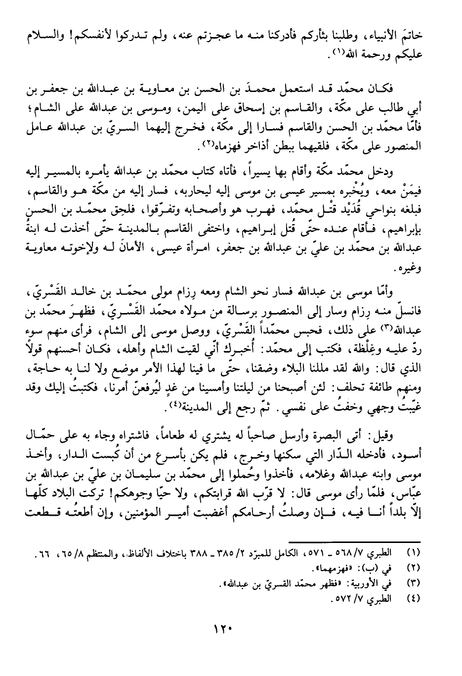 وَأَمَّا مُوسَى بْنُ عَبْدِ اللَّهِ فَسَارَ نَحْوَ الشَّامِ وَمَعَهُ رِزَامٌ مَوْلَى مُحَمَّدِ بْنِ خَالِدٍ الْقَسْرِيِّ، فَانْسَلَّ مِنْهُ رِزَامٌ وَسَارَ إِلَى الْمَنْصُورِ بِرِسَالَةٍ مِنْ مَوْلَاهُ مُحَمَّدٍ الْقَسْرِيِّ، فَظَهَرَ مُحَمَّدُ بْنُ عَبْدِ اللَّهِ عَلَى ذَلِكَ، فَحَبَسَ مُحَمَّدًا الْقَسْرِيَّ، وَوَصَلَ مُوسَى إِلَى الشَّامِ فَرَأَى مِنْهُمْ سُوءَ رَدٍّ عَلَيْهِ وَغِلْظَةً، فَكَتَبَ إِلَيْهِ مُحَمَّدٌ: أُخْبِرُكَ أَنِّي لَقِيتُ الشَّامَ وَأَهْلَهُ، فَكَانَ أَحْسَنَهُمْ قَوْلًا الَّذِي قَالَ: وَاللَّهِ لَقَدْ مَلِلْنَا الْبَلَاءَ وَضِقْنَا حَتَّى مَا فِينَا لِهَذَا الْأَمْرِ مَوْضِعٌ وَلَا بِنَا بِهِ حَاجَةٌ، وَمِنْهُمْ طَائِفَةٌ تَحْلِفُ لَئِنْ أَصْبَحْنَا مِنْ لَيْلَتِنَا وَأَمْسَيْنَا مِنْ غَدٍ لَيُرْفَعَنَّ أَمْرُنَا، فَكَتَبْتُ إِلَيْكَ وَقَدْ غَيَّبْتُ وَجْهِي، وَخِفْتُ عَلَى نَفْسِي. ثُمَّ رَجَعَ إِلَى الْمَدِينَةِ.