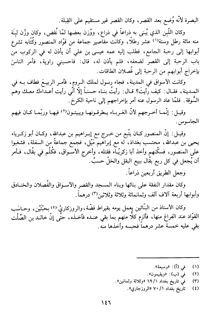 وَكَانَ مِقْدَارُ النَّفَقَةِ عَلَى بِنَائِهَا وَبِنَاءِ الْمَسْجِدِ وَالْقَصْرِ وَالْأَسْوَاقِ وَالْفُصْلَانِ وَالْخَنَادِقِ وَأَبْوَابِهَا أَرْبَعَةَ آلَافِ أَلْفٍ وَثَمَانِمِائَةٍ وَثَلَاثَةً وَثَلَاثِينَ دِرْهَمًا.