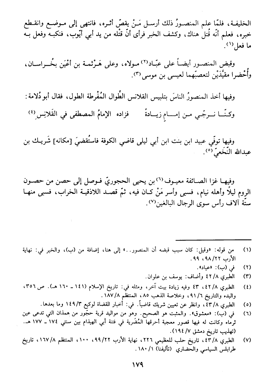 وَفِيهَا أَخَذَ الْمَنْصُورُ النَّاسَ بِتَلْبِيسِ الْقَلَانِسِ الطِّوَالِ الْمُفْرِطَةِ الطُّولِ، فَقَالَ أَبُو دُلَامَةَ: