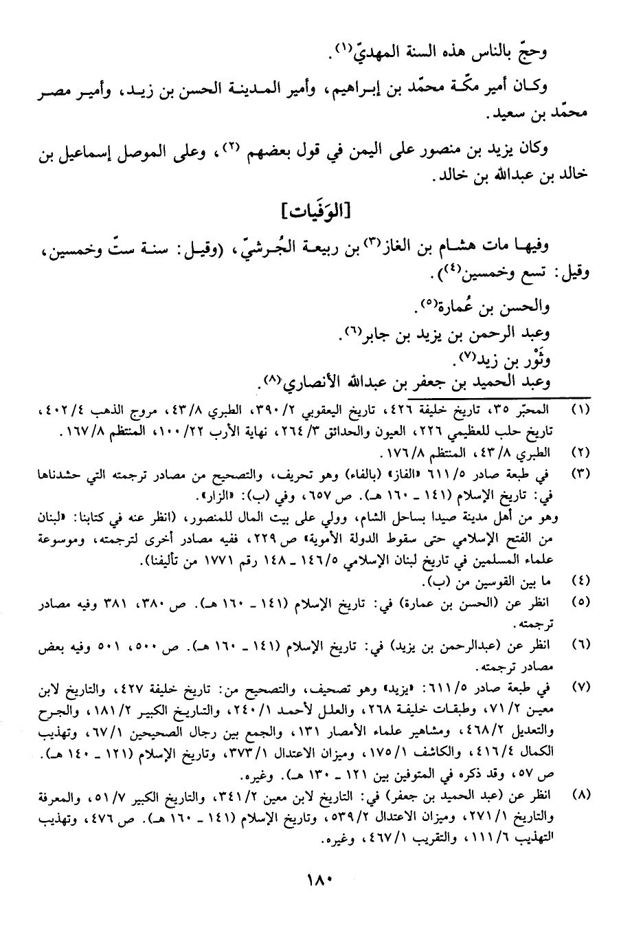 وَفِيهَا مَاتَ هِشَامُ بْنُ الْغَازِ بْنِ رَبِيعَةَ الْجُرَشِيُّ، (وَقِيلَ: سَنَةَ سِتٍّ وَخَمْسِينَ، وَقِيلَ: تِسْعٍ وَخَمْسِينَ) . وَالْحَسَنُ بْنُ عُمَارَةَ. وَعَبْدُ الرَّحْمَنِ بْنُ يَزِيدَ بْنِ جَابِرٍ. وَثَوْرُ بْنُ زَيْدٍ. وَعَبْدُ الْحَمِيدِ بْنُ جَعْفَرِ بْنِ عَبْدِ اللَّهِ الْأَنْصَارِيُّ.