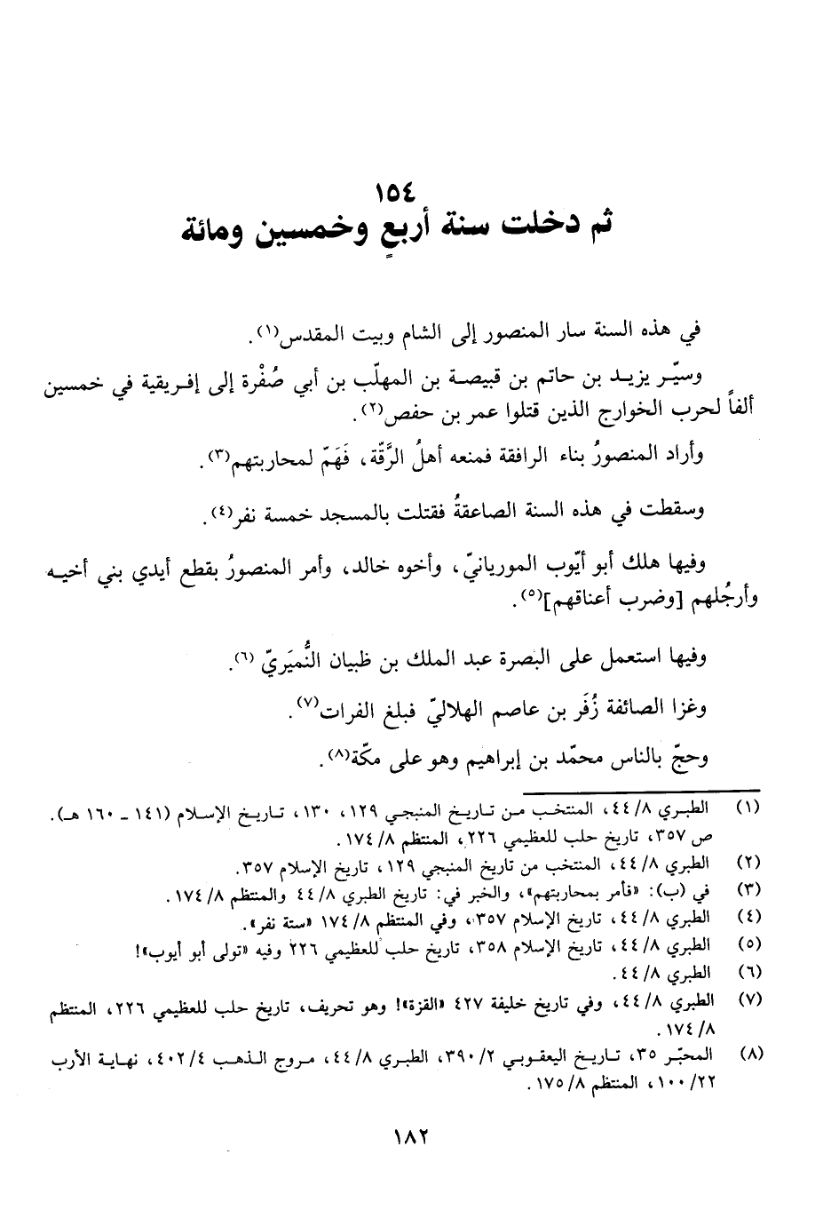 ثُمَّ دَخَلَتْ سَنَةُ أَرْبَعٍ وَخَمْسِينَ وَمِائَةٍ