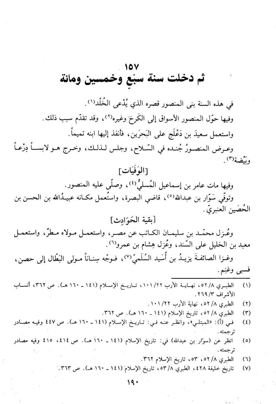ثُمَّ دَخَلَتْ سَنَةُ سَبْعٍ وَخَمْسِينَ وَمِائَةٍ