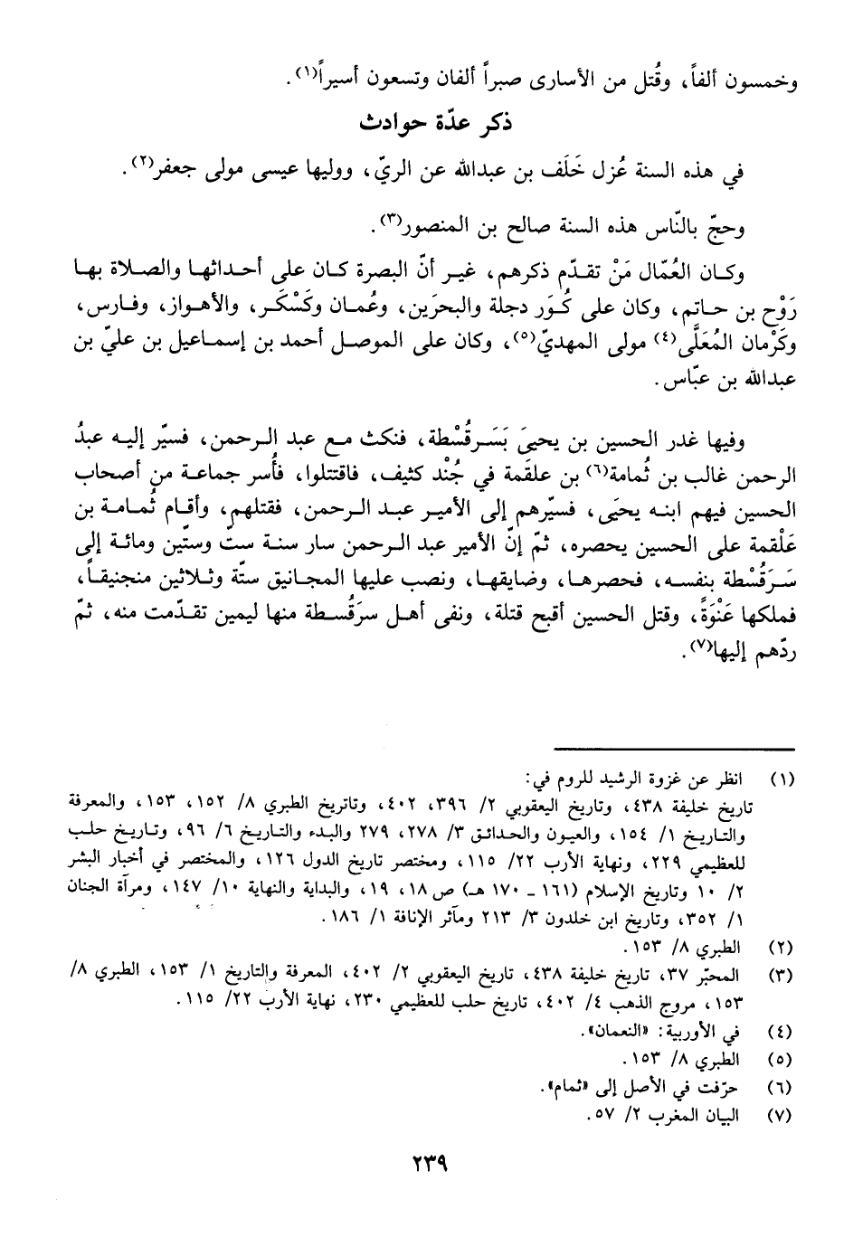فِي هَذِهِ السَّنَةِ عُزِلَ خَلَفُ بْنُ عَبْدِ اللَّهِ عَنِ الرَّيِّ، وَوَلِيَهَا عِيسَى مَوْلَى جَعْفَرٍ.