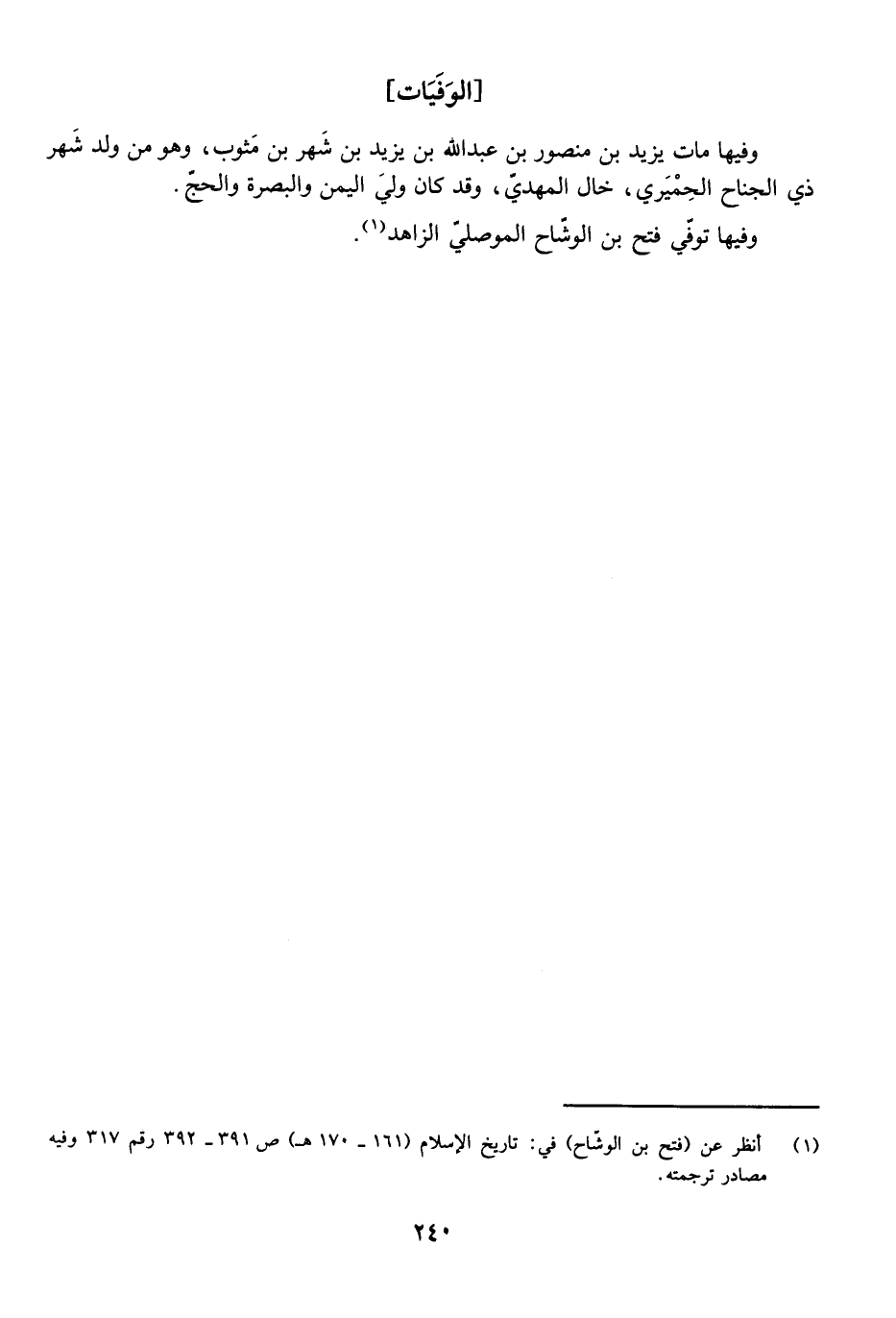 وَفِيهَا تُوُفِّيَ فَتْحُ بْنُ الْوَشَّاحِ الْمَوْصِلِيُّ الزَّاهِدُ.
