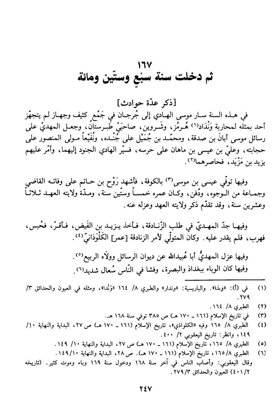 ثُمَّ دَخَلَتْ سَنَةُ سَبْعٍ وَسِتِّينَ وَمِائَةٍ