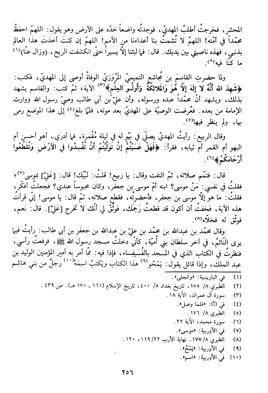 قَالَ: فَتَمَّمَ صَلَاتَهُ، ثُمَّ الْتَفَتَ وَقَالَ: يَا رَبِيعُ! قُلْتُ: لَبَّيْكَ! قَالَ: [عَلَيَّ] بِمُوسَى، فَقُلْتُ فِي نَفْسِي: مَنْ مُوسَى؟ ابْنُهُ أَمْ مُوسَى بْنُ جَعْفَرٍ، وَكَانَ مَحْبُوسًا عِنْدِي؟ فَجَعَلْتُ أُفَكِّرُ، فَقُلْتُ: مَا هُوَ إِلَّا مُوسَى بْنُ جَعْفَرٍ، فَأَحْضَرْتُهُ، فَقَطَعَ صَلَاتَهُ، ثُمَّ قَالَ: يَا مُوسَى! إِنِّي قَرَأْتُ هَذِهِ الْآيَةَ، فَخِفْتُ أَنْ أَكُونَ قَدْ قَطَعْتُ رَحِمَكَ، فَوَثِّقْ لِي أَنَّكَ لَا تَخْرُجُ [عَلَيَّ] . قَالَ: نَعَمْ، فَوَثَّقَ لَهُ فَخَلَّاهُ.