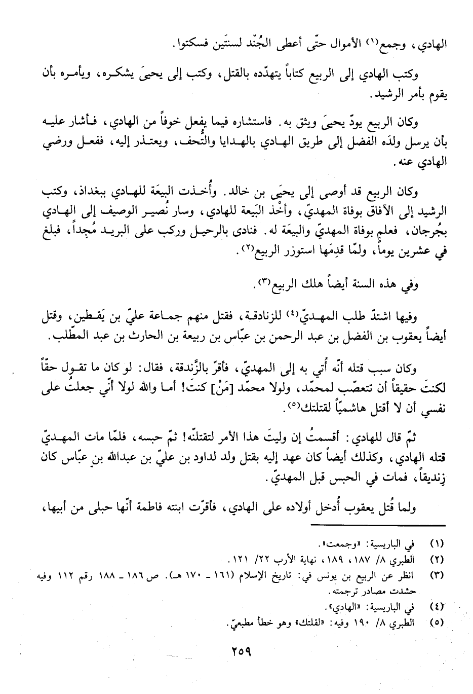 وَكَتَبَ الْهَادِي إِلَى الرَّبِيعِ كِتَابًا يَتَهَدَّدُهُ بِالْقَتْلِ، وَكَتَبَ إِلَى يَحْيَى يَشْكُرُهُ، وَيَأْمُرُهُ بِأَنْ يَقُومَ بِأَمْرِ الرَّشِيدِ.