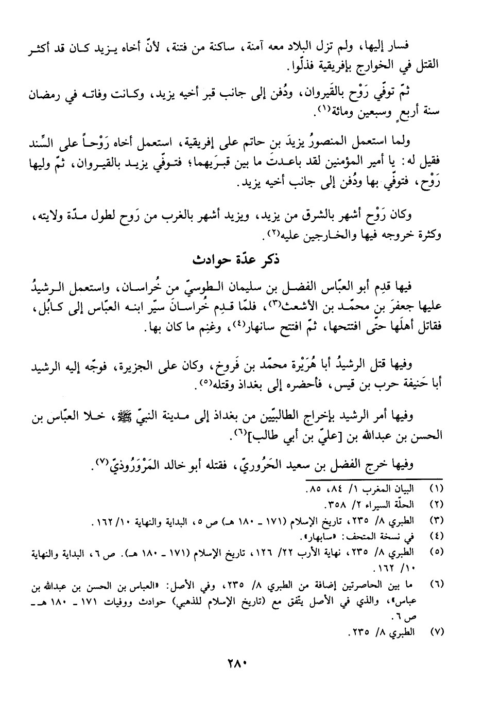 وَفِيهَا أَمَرَ الرَّشِيدُ بِإِخْرَاجِ الطَّالِبِيِّينَ مِنْ بَغْدَاذَ إِلَى مَدِينَةِ النَّبِيِّ - صَلَّى اللَّهُ عَلَيْهِ وَسَلَّمَ - خَلَا الْعَبَّاسِ بْنِ الْحَسَنِ بْنِ عَبْدِ اللَّهِ بْنِ [عَلِيِّ بْنِ أَبِي طَالِبٍ] .