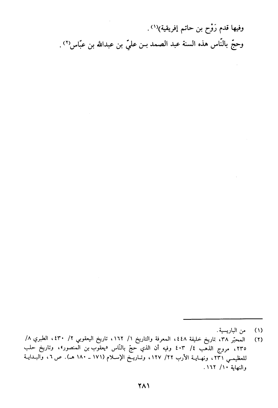 وَفِيهَا قَدِمَ رَوْحُ بْنُ حَاتِمٍ إِفْرِيقِيَّةَ. وَحَجَّ بِالنَّاسِ هَذِهِ السَّنَةَ عَبْدُ الصَّمَدِ بْنُ عَلِيِّ بْنِ عَبْدِ اللَّهِ بْنِ عَبَّاسٍ.