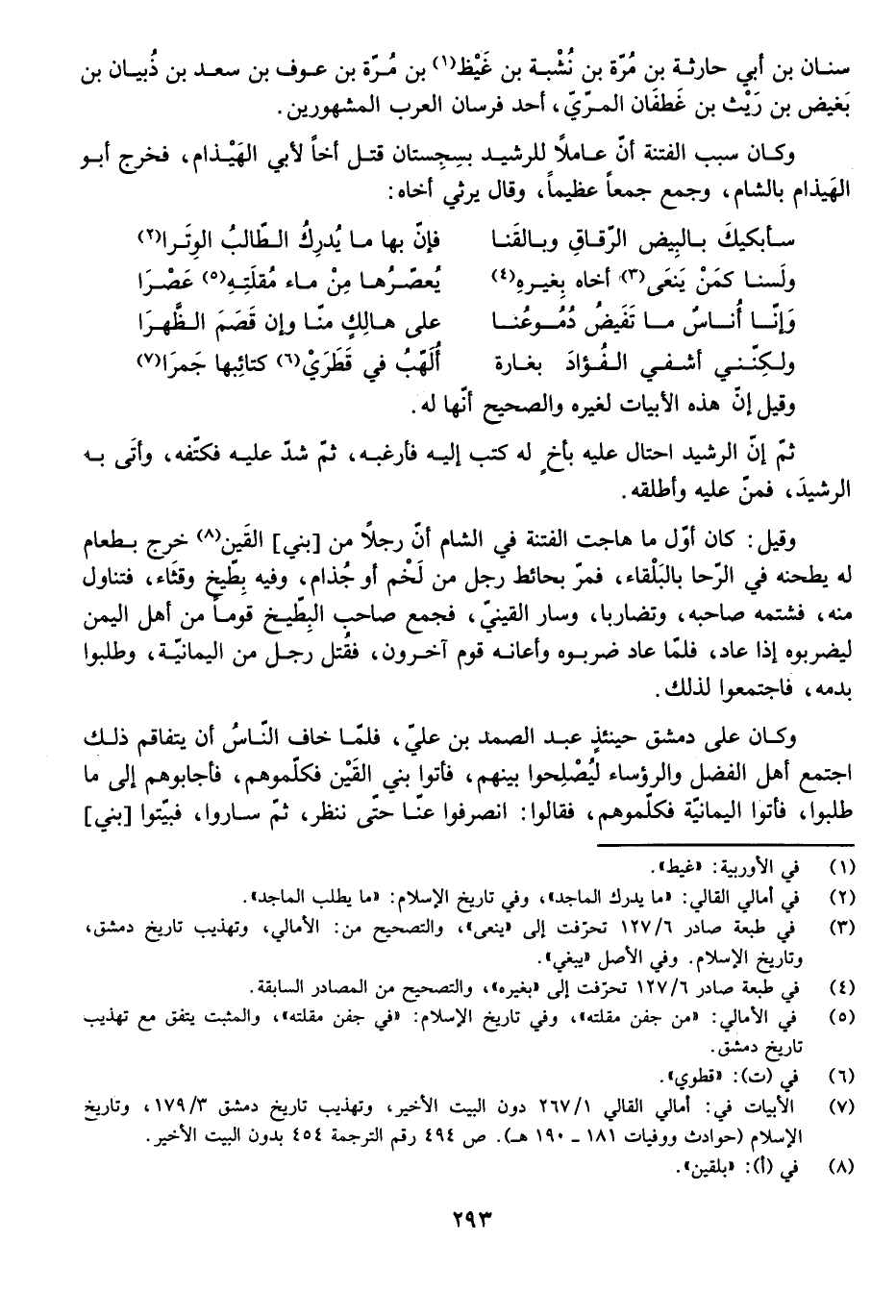 وَكَانَ سَبَبُ الْفِتْنَةِ أَنَّ عَامِلًا لِلرَّشِيدِ بِسِجِسْتَانَ قَتَلَ أَخًا لِأَبِي الْهَيْذَامِ، فَخَرَجَ أَبُو الْهَيْذَامِ بِالشَّامِ، وَجَمَعَ جَمْعًا عَظِيمًا، وَقَالَ يَرْثِي أَخَاهُ: