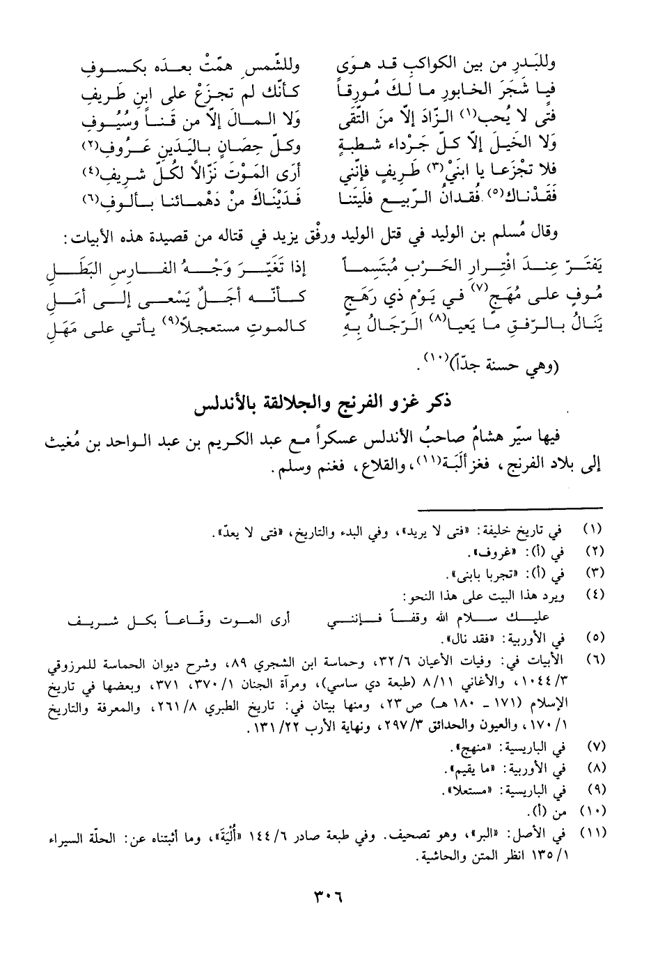 وَقَالَ مُسْلِمُ بْنُ الْوَلِيدِ فِي قَتْلِ الْوَلِيدِ وَرِفْقِ يَزِيدَ فِي قِتَالِهِ مِنْ قَصِيدَةِ هَذِهِ الْأَبْيَاتِ: