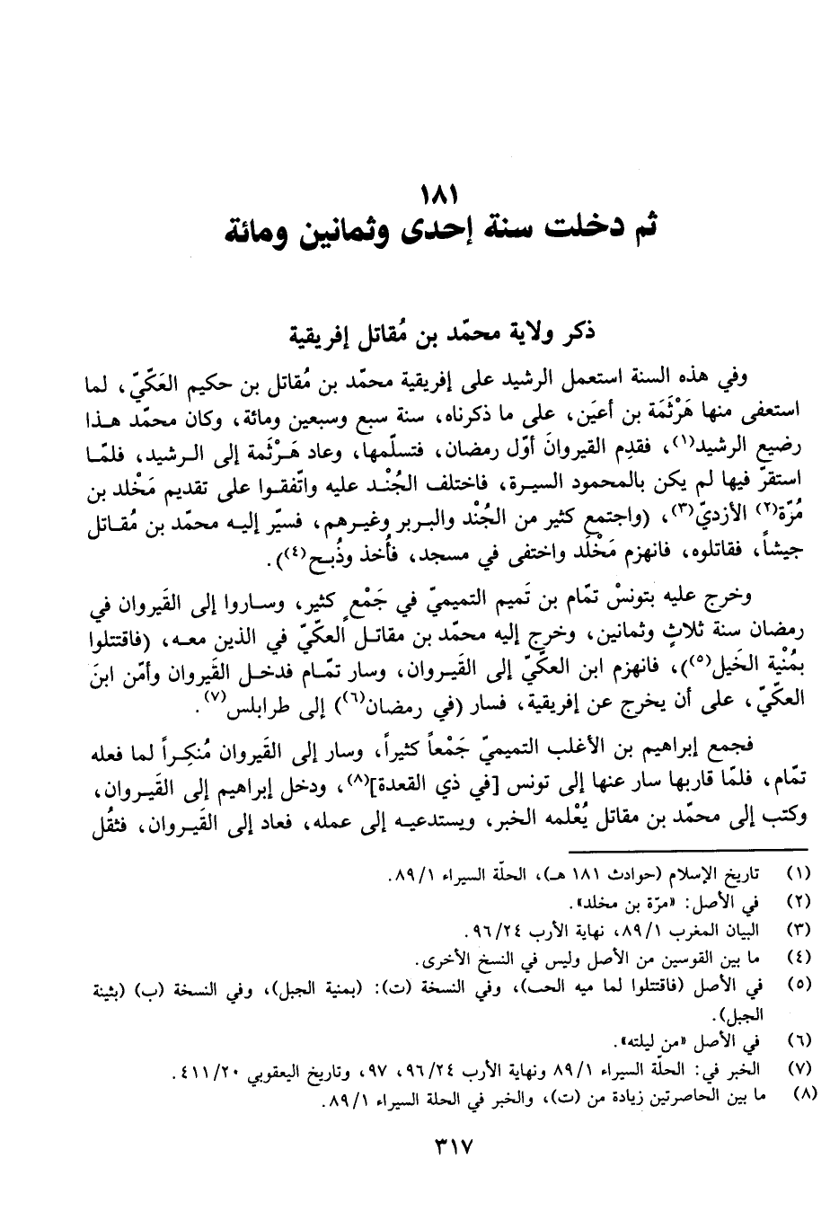 ثُمَّ دَخَلَتْ سَنَةُ إِحْدَى وَثَمَانِينَ وَمِائَةٍ