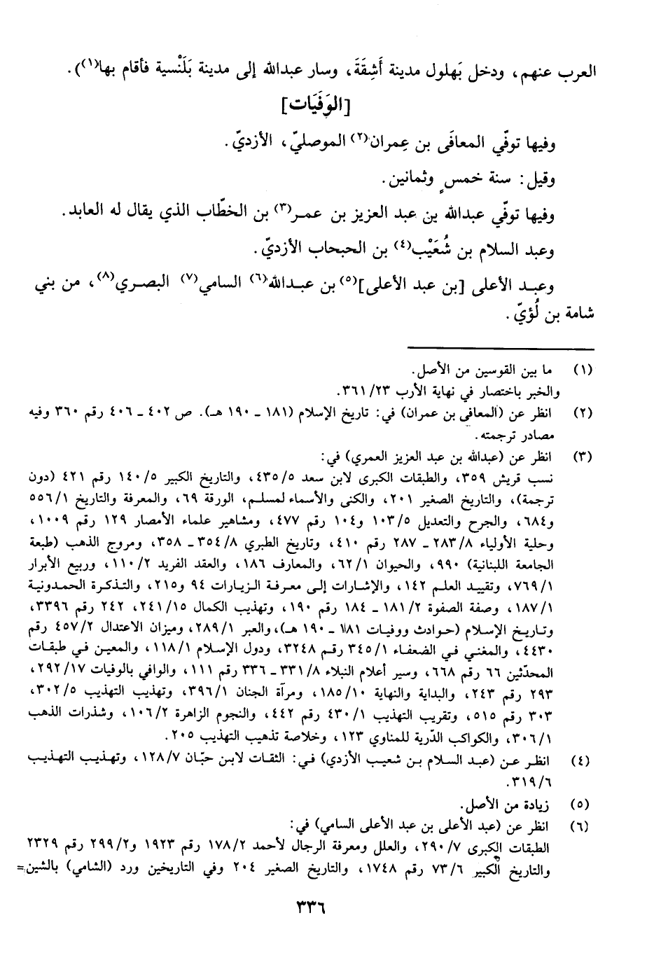 وَفِيهَا تُوُفِّيَ الْمُعَافَى بْنُ عِمْرَانَ الْمَوْصِلِيُّ الْأَزْدِيُّ، وَقِيلَ: سَنَةَ خَمْسٍ وَثَمَانِينَ.