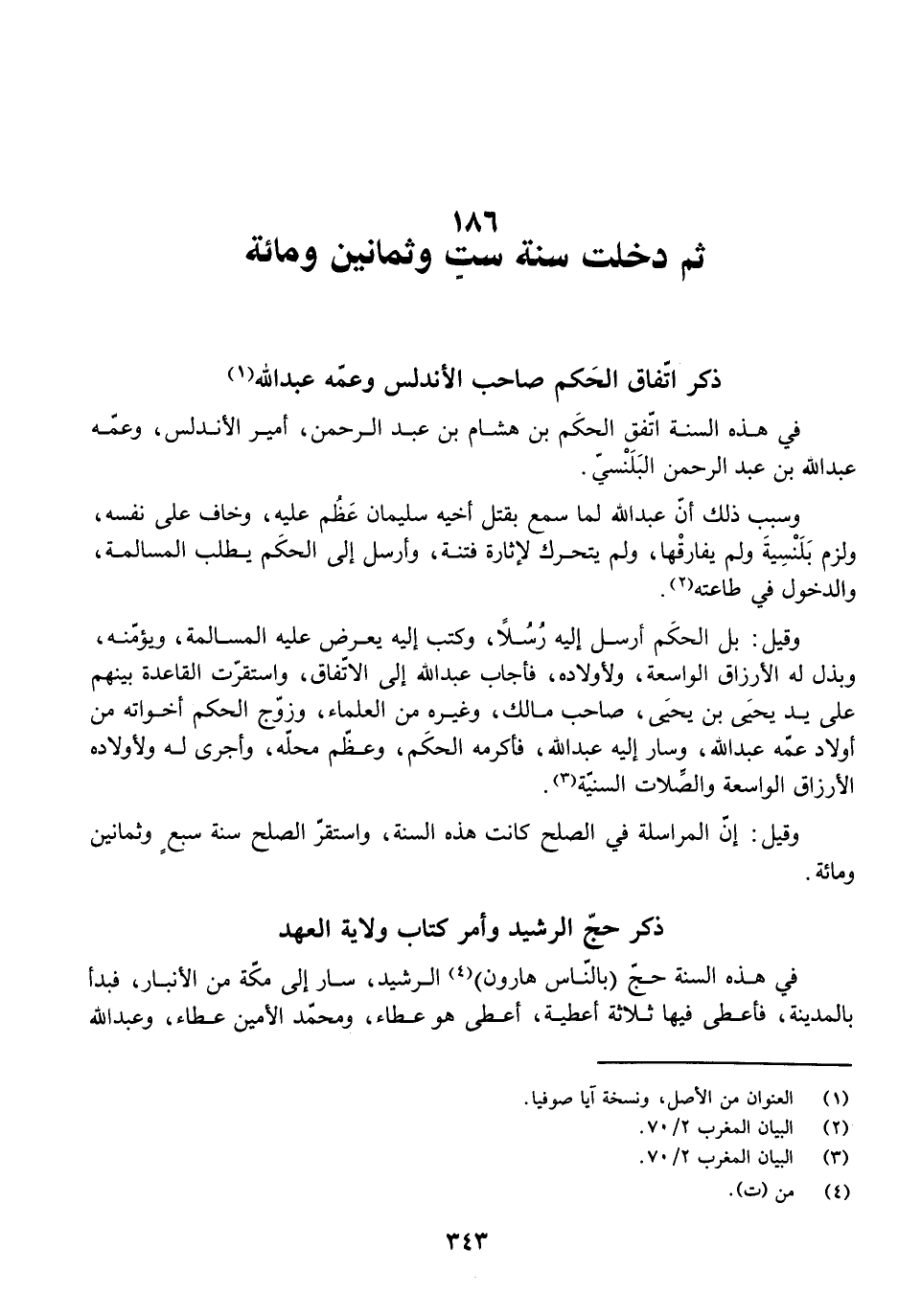 ثُمَّ دَخَلَتْ سَنَةُ سِتٍّ وَثَمَانِينَ وَمِائَةٍ