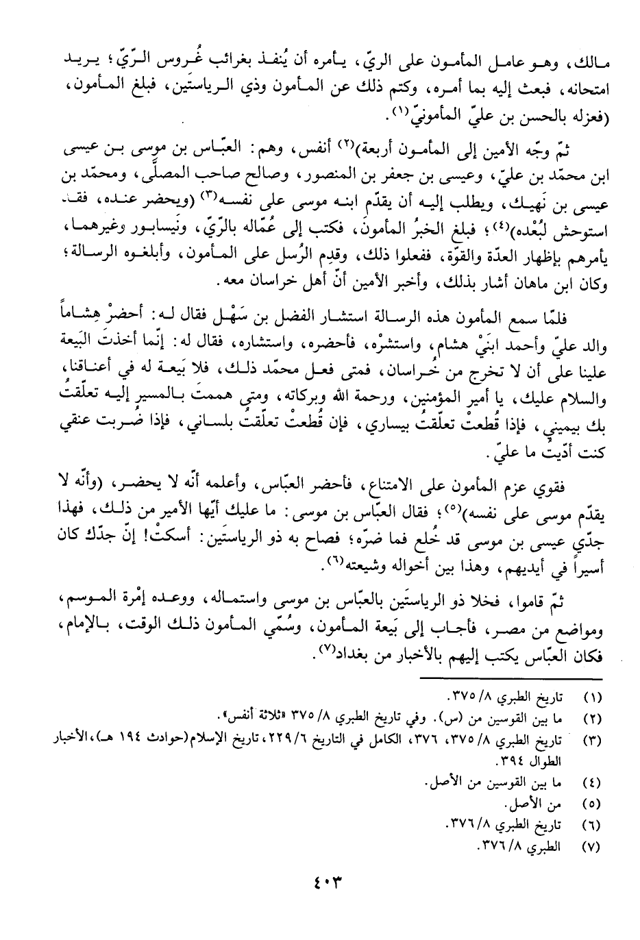 ثُمَّ قَامُوا، فَخَلَا ذُو الرِّيَاسَتَيْنِ بِالْعَبَّاسِ بْنِ مُوسَى وَاسْتَمَالَهُ، وَوَعَدَهُ إِمْرَةَ الْمَوْسِمِ، وَمَوَاضِعَ مِنْ مِصْرَ، فَأَجَابَ إِلَى بَيْعَةِ الْمَأْمُونِ، وَسُمِّيَ الْمَأْمُونُ ذَلِكَ الْوَقْتَ بِالْإِمَامِ، فَكَانَ الْعَبَّاسُ يَكْتُبُ إِلَيْهِمْ بِالْأَخْبَارِ مِنْ بَغْدَادَ.