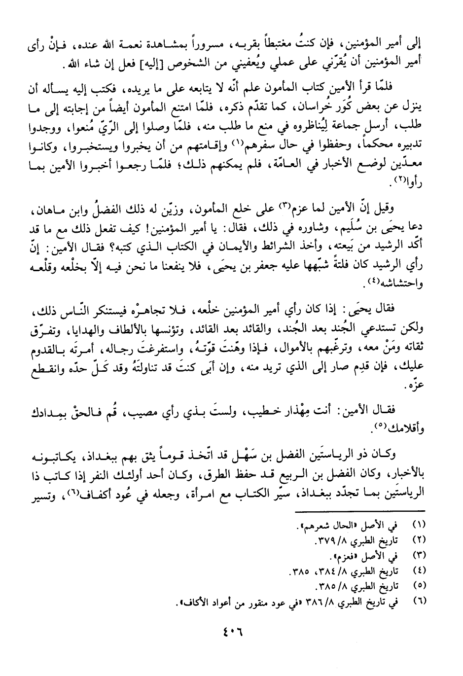 وَكَانَ ذُو الرِّيَاسَتَيْنِ الْفَضْلُ بْنُ سَهْلٍ قَدِ اتَّخَذَ قَوْمًا يَثِقُ بِهِمْ بِبَغْدَاذَ يُكَاتِبُونَهُ بِالْأَخْبَارِ، وَكَانَ الْفَضْلُ بْنُ الرَّبِيعِ قَدْ حَفِظَ الطُّرُقَ، وَكَانَ أَحَدُ أُولَئِكَ النَّفَرِ إِذَا كَاتَبَ ذَا الرِّيَاسَتَيْنِ بِمَا تَجَدَّدَ بِبَغْدَاذَ، سَيَّرَ الْكِتَابَ مَعَ امْرَأَةٍ، وَجَعَلَهُ فِي عُودِ أَكْفَافٍ، وَتَسِيرُ