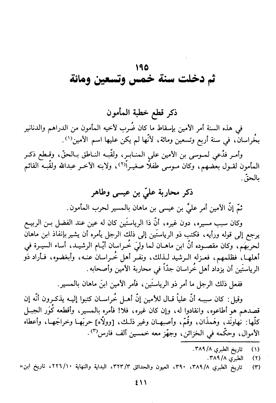 ثُمَّ إِنَّ الْأَمِينَ أَمَرَ عَلِيَّ بْنَ عِيسَى بْنِ مَاهَانَ بِالْمَسِيرِ لِحَرْبِ الْمَأْمُونِ.
